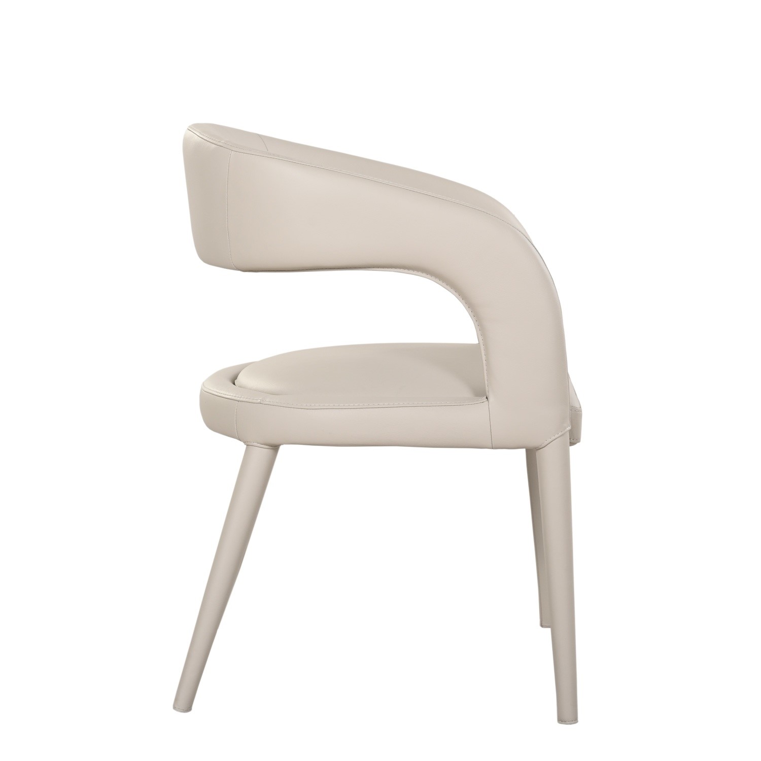 Modern luxury: This fully upholstered dining chair brings refined style and understated elegance to your space, with its soft beige real leather finish and sculptural curved silhouette. Designed to impress from every angle, it's a perfect fit for contemporary, luxe, or minimalist interiors.