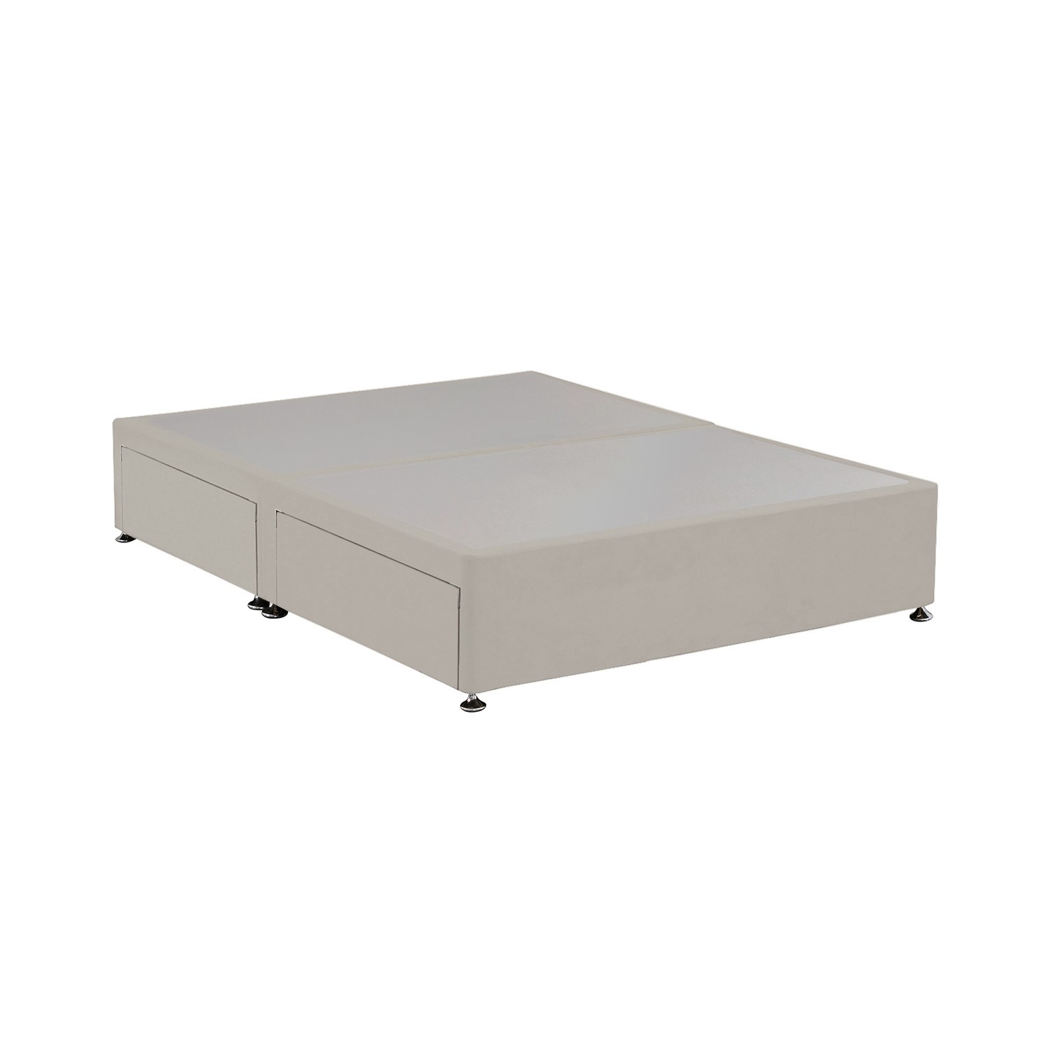 Bring timeless style, smart storage, and reliable craftsmanship to your bedroom with the Langston Divan Bed Base with four drawers. Upholstered in a soft-touch beige velvet fabric and finished with contemporary chrome-effect gliders, it blends elegance with practicality. The platform top keeps your mattress securely in place, while the sturdy FSC-certified wood frame and solid bed base ensure durability. This divan bed base is made to order to suit your needs and is also simple to assemble—it’s just a case of fixing the feet and your choice of headboard in place. Designed to suit a variety of interiors, it is compatible with the Langston range and any universal headboard, giving you the freedom to create your own style. It fits a UK standard king-size mattress, which is not included, giving you the freedom to pair it with a mattress of your choice. Ethically made in the UK by a National Bed Federation-approved manufacturer, ensuring quality and peace of mind.