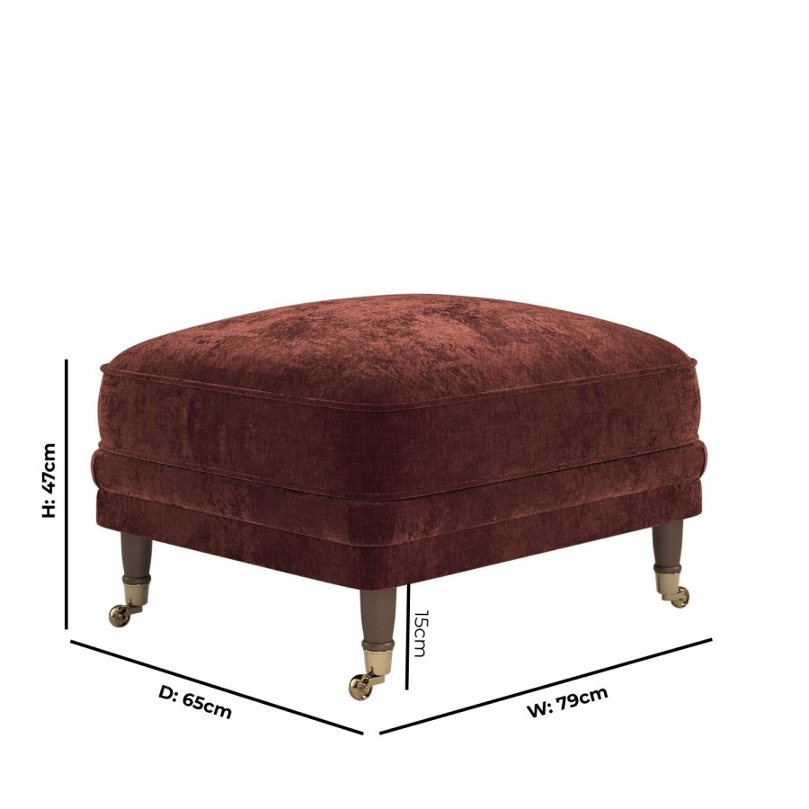 Experience refined comfort with the Payton Heritage Footstool, a timeless update of our beloved classic. Perfectly designed to complement the Payton Heritage sofa or armchair, it creates a cohesive and sophisticated look in any room. Generously padded with premium feather filling, it offers a soft, inviting feel, ideal for stretching out and relaxing after a long day. Wrapped in rich berry-brown chenille with a textured finish, it adds warmth, depth, and understated elegance to your home. Versatile and multi-functional, it can be used as a footstool, extra seating, or a small coffee table. Thoughtful details like removable castors and a fully finished 360-degree design ensure both practicality and style.