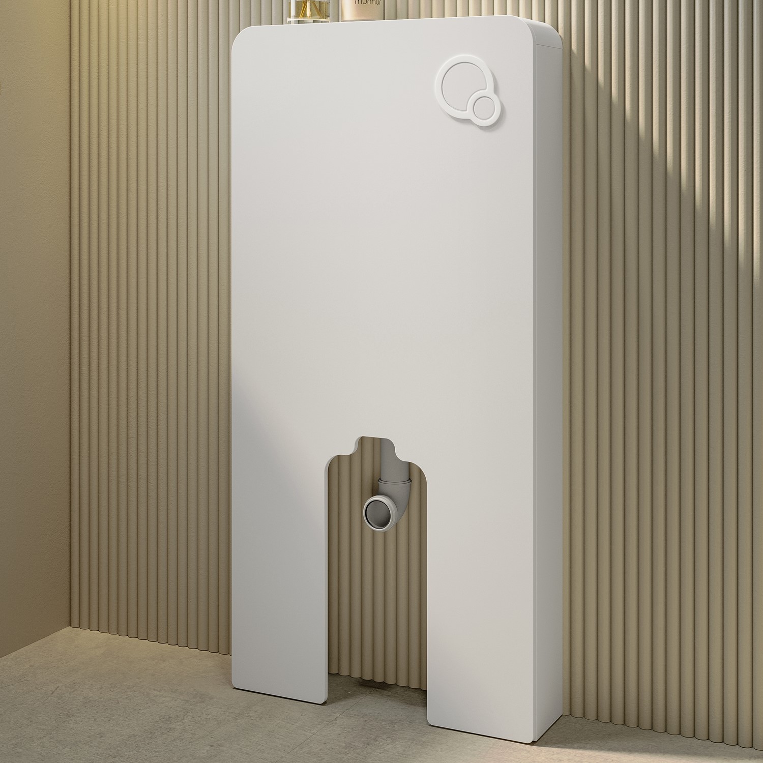 Gloss White Glass Cistern Cabinet: The sleek Hako cabinet features a toughened glass front and matt steel body, offering a minimalist look while concealing the cistern and pipework.