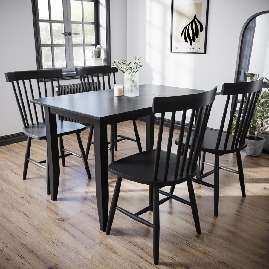 4 Black Wooden Spindle Dining Chairs - Olsen