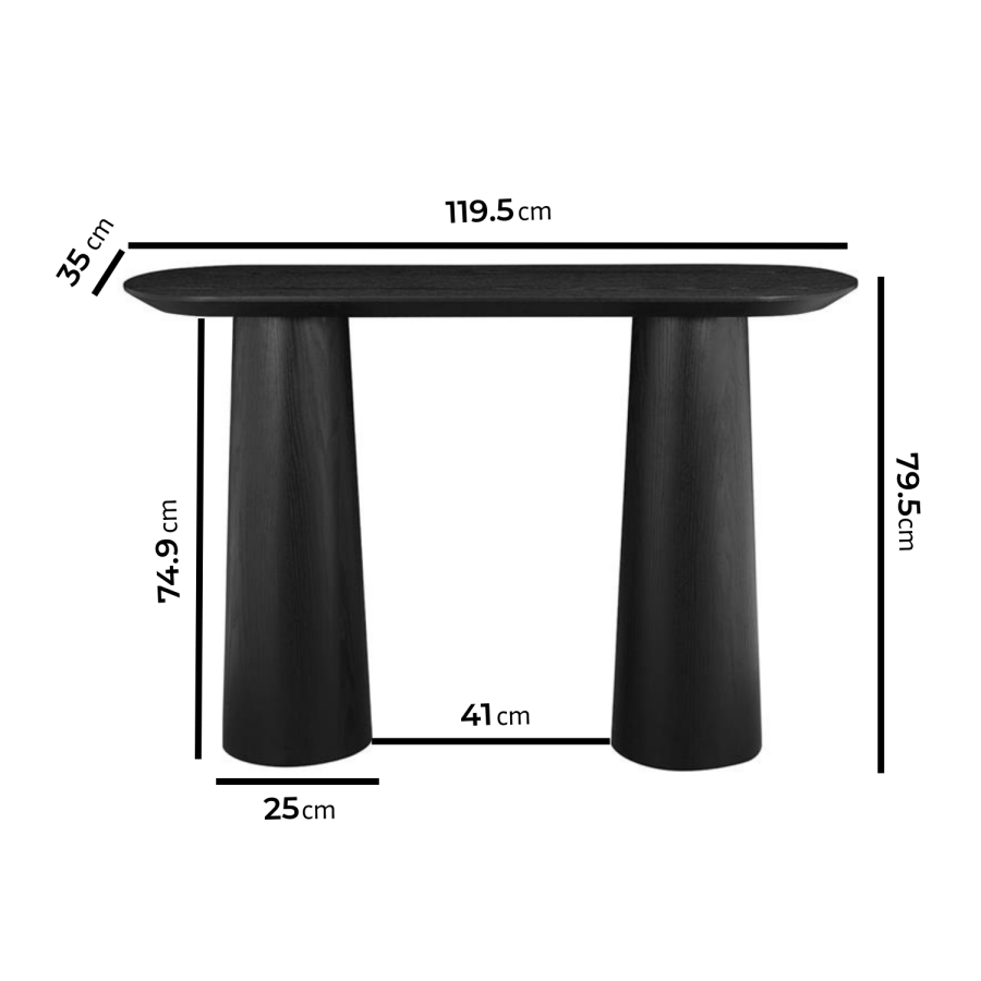 The Malia Black Ash Console Table brings contemporary elegance to any modern home. Designed with a warm, natural ash veneer top, it highlights the beauty of wood grain while maintaining a refined, minimalist style. The top is paired with two bold black pedestal legs that create a striking sculptural silhouette, giving the piece a modern architectural edge. Perfect for hallways, entryways, or living spaces, the Malia console table offers both practicality and understated sophistication. With its balanced mix of natural texture and contemporary form, it serves as a stunning accent piece that enhances a wide range of décor styles.
