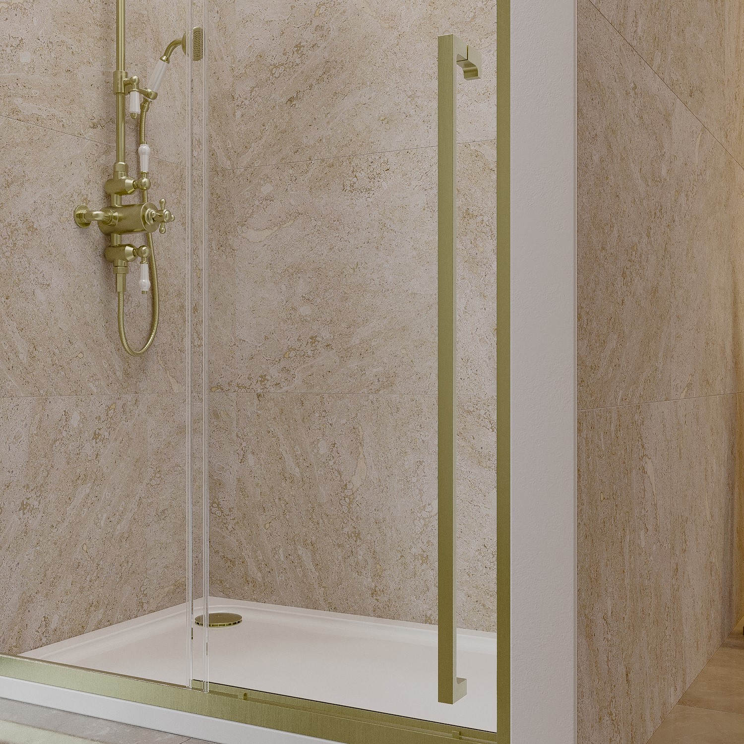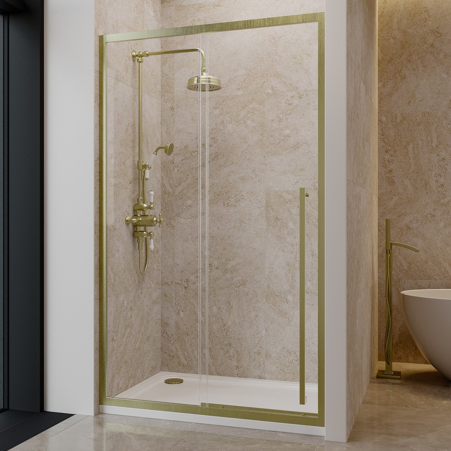 Bring a modern touch to your bathroom with the Pavo Rectangular Sliding Shower Door in Brushed Brass. This elegant enclosure combines luxurious aesthetics with everyday functionality. The brushed brass frame adds instant warmth and sophistication, making it a standout in any bathroom design.