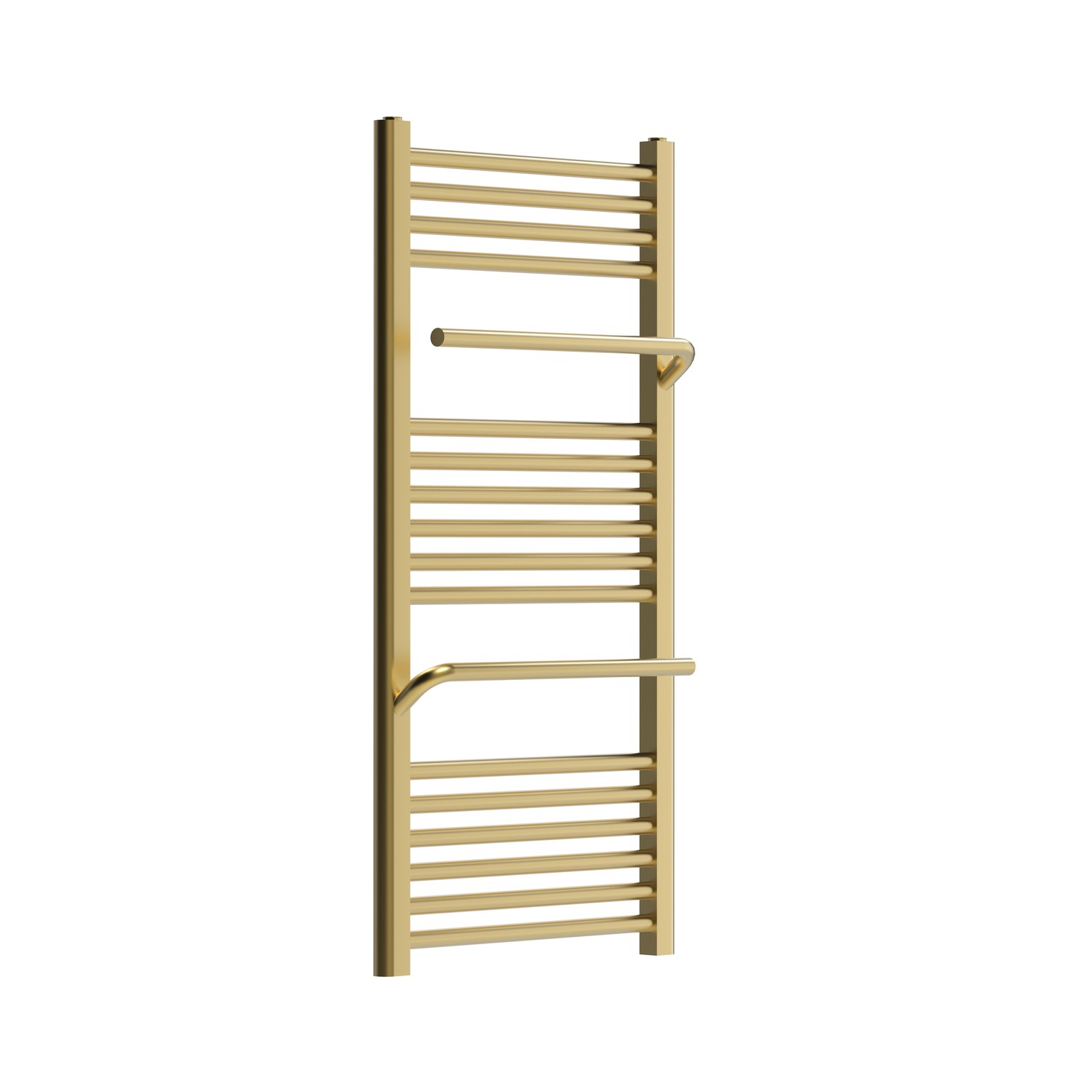 Sleek Brushed Brass Finish: Showcasing rich, warm brass tones and a luxurious brushed texture, this towel radiator adds understated elegance to modern bathrooms.