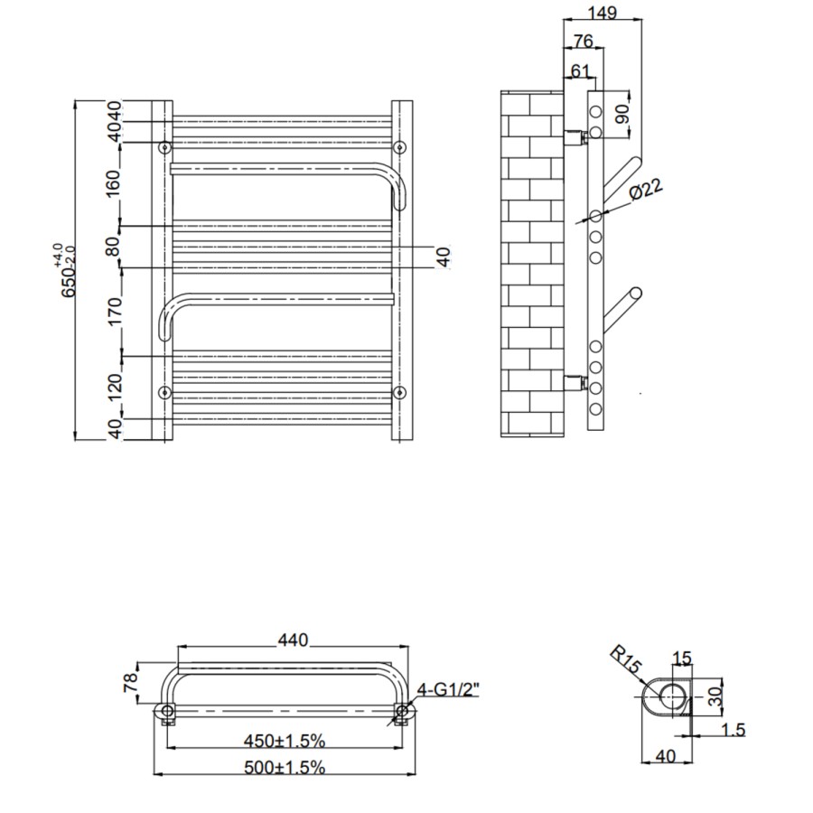 - Radiator Dimensions: H650mm x W500mm x D149mm