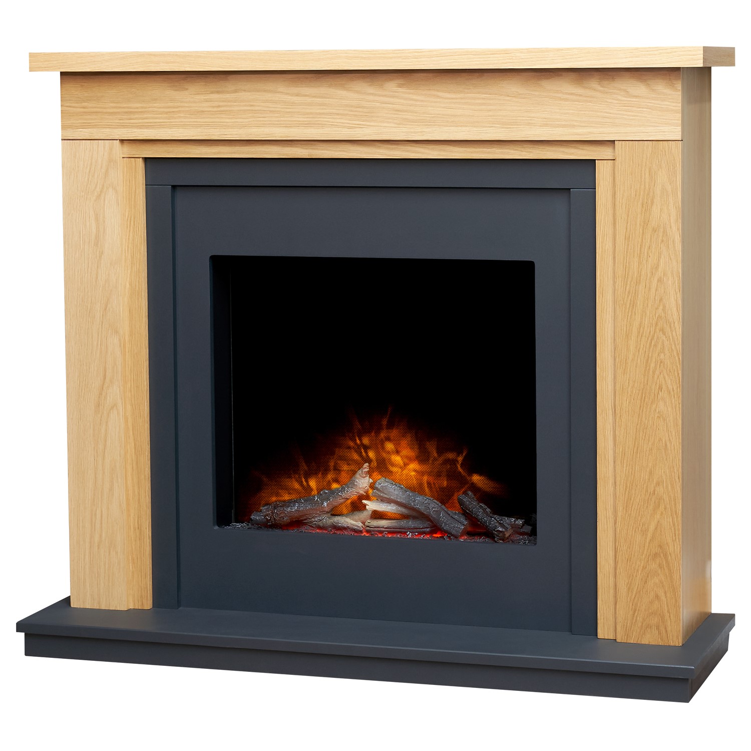 The Brentwood fireplace is perfect for a modern, minimalist interior. With an oak effect and charcoal grey finish, this surround comes complete with the Adam Ontario electric fire which is guaranteed to impress with its unique LED-X flame effect and log effect fuel bed. This fireplace is supplied with a 7-day programmable timer remote for which you can control the flame effect and adjust the thermostat heat output between 1kW and 2kW.
