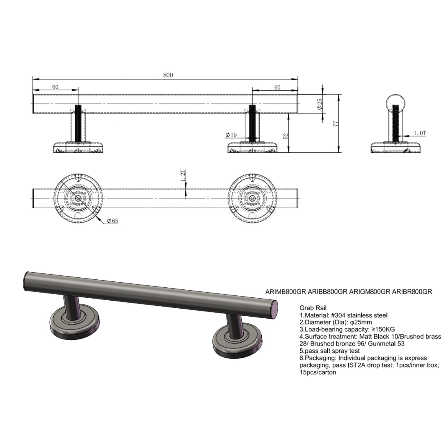 Crafted with high-quality materials, this grab rail benefits from PVD (Physical Vapour Deposition) coating technology. This advanced coating technology offers exceptional resistance to scratches, corrosion, and fading, keeping its rich colour and sleek look even in humid environments.