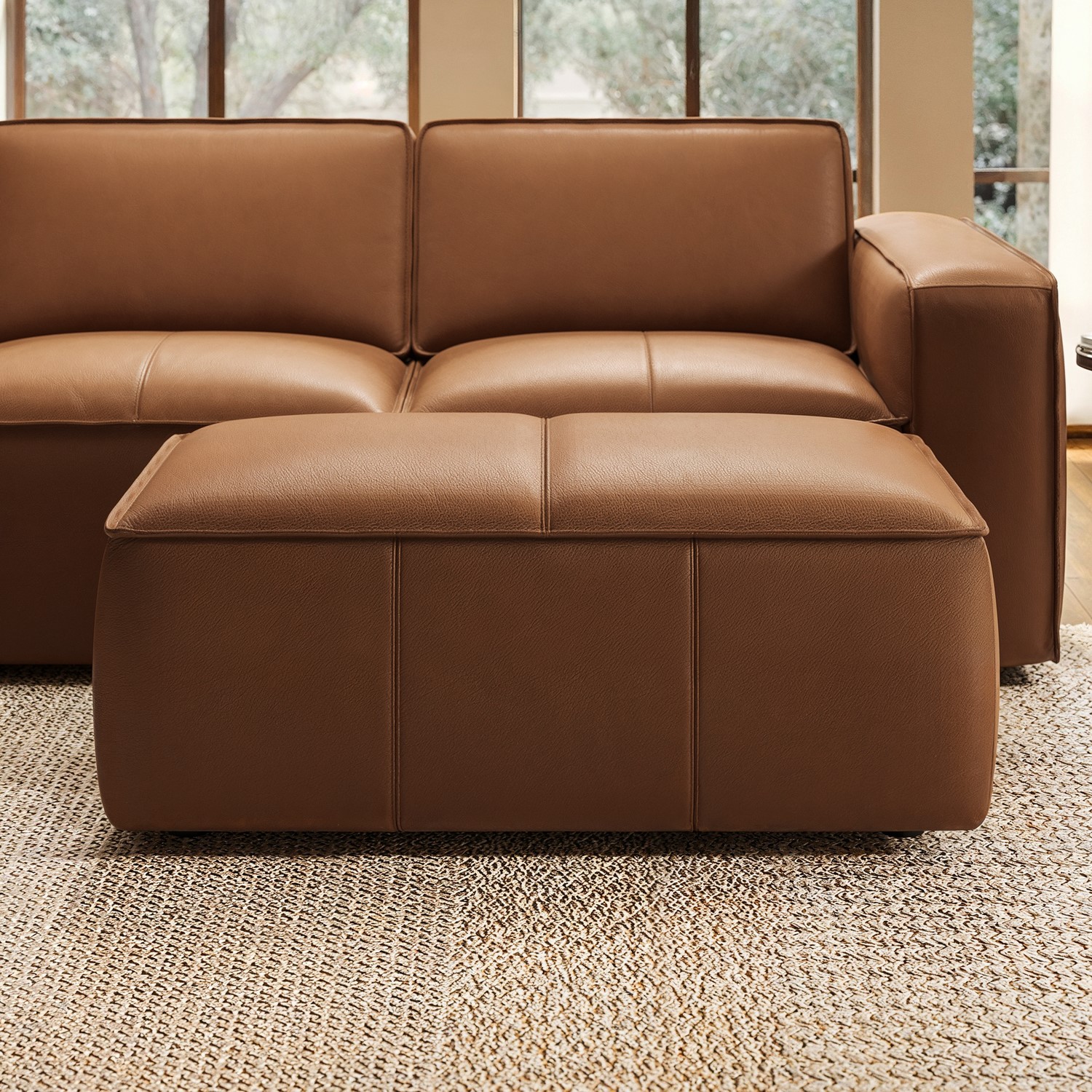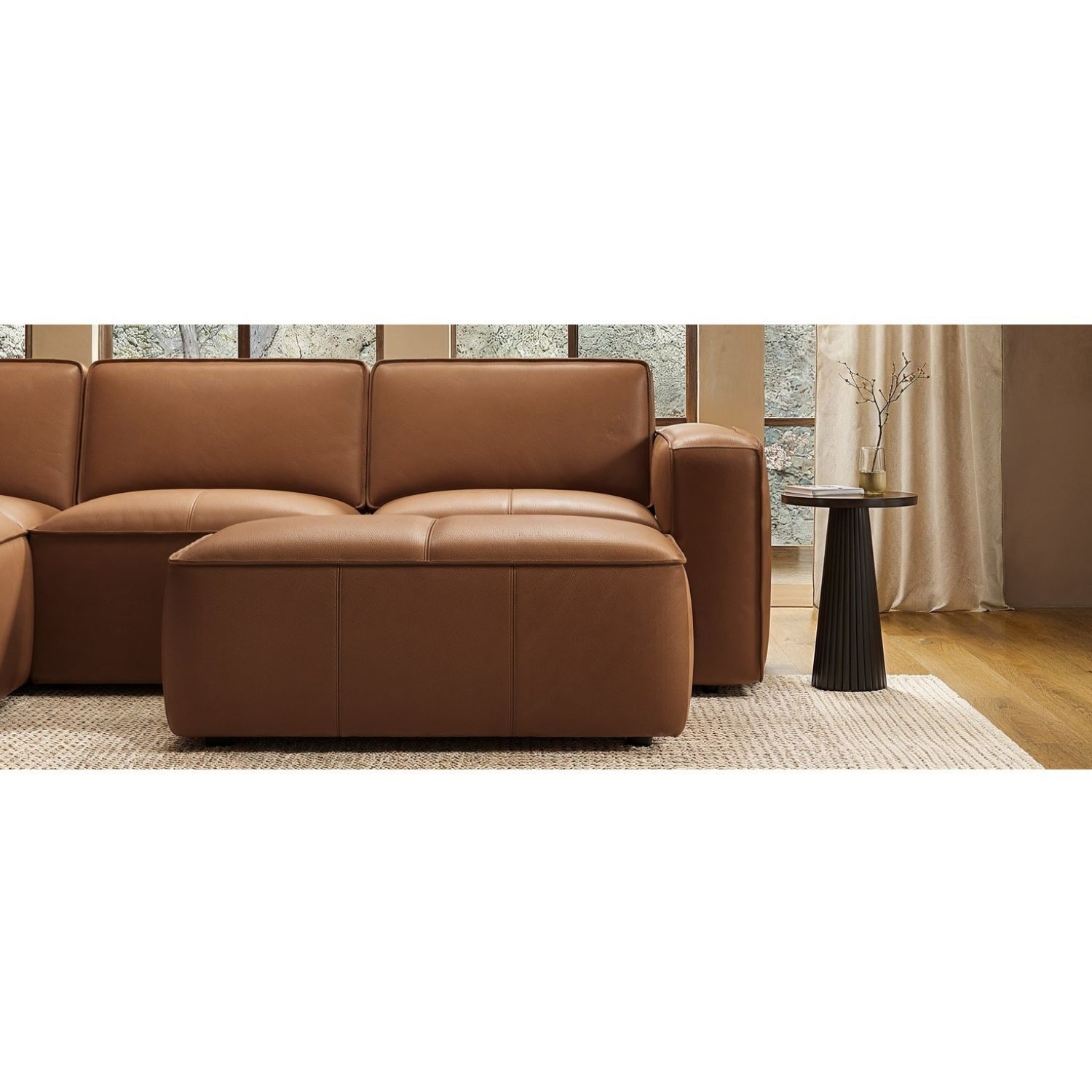 Add the perfect finishing touch to your living space with the Samuel Footstool, the perfect match to the Samuel Chaise Sofa. Crafted with a sturdy acacia and plywood frame, it’s upholstered in genuine caramel brown leather with a fine grain, matt finish, and subtle texture. Pleated details, double stitching, and piping along the edges highlight its refined craftsmanship, while foam filling ensures maximum comfort. With wide square edges and a clean, modern silhouette, it’s as versatile as it is stylish — ideal for relaxing, extra seating, or use as a chic coffee table alternative.
