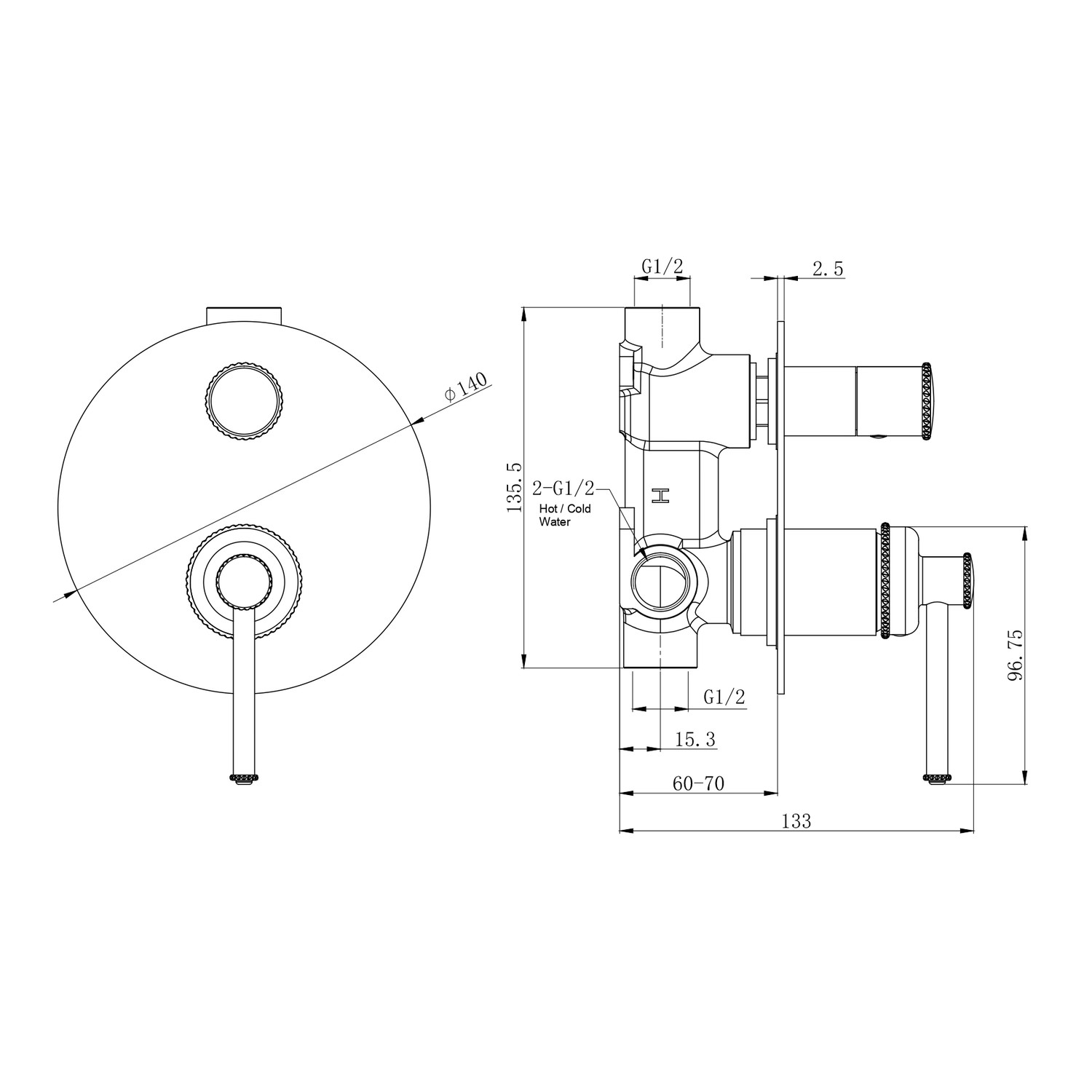 Dual Outlet Concealed Shower: This two-outlet shower contains a wall-mounted shower hose, bath filler spout, and matching concealed valve. Use the lever to mix hot and cold water for your perfect temperature.