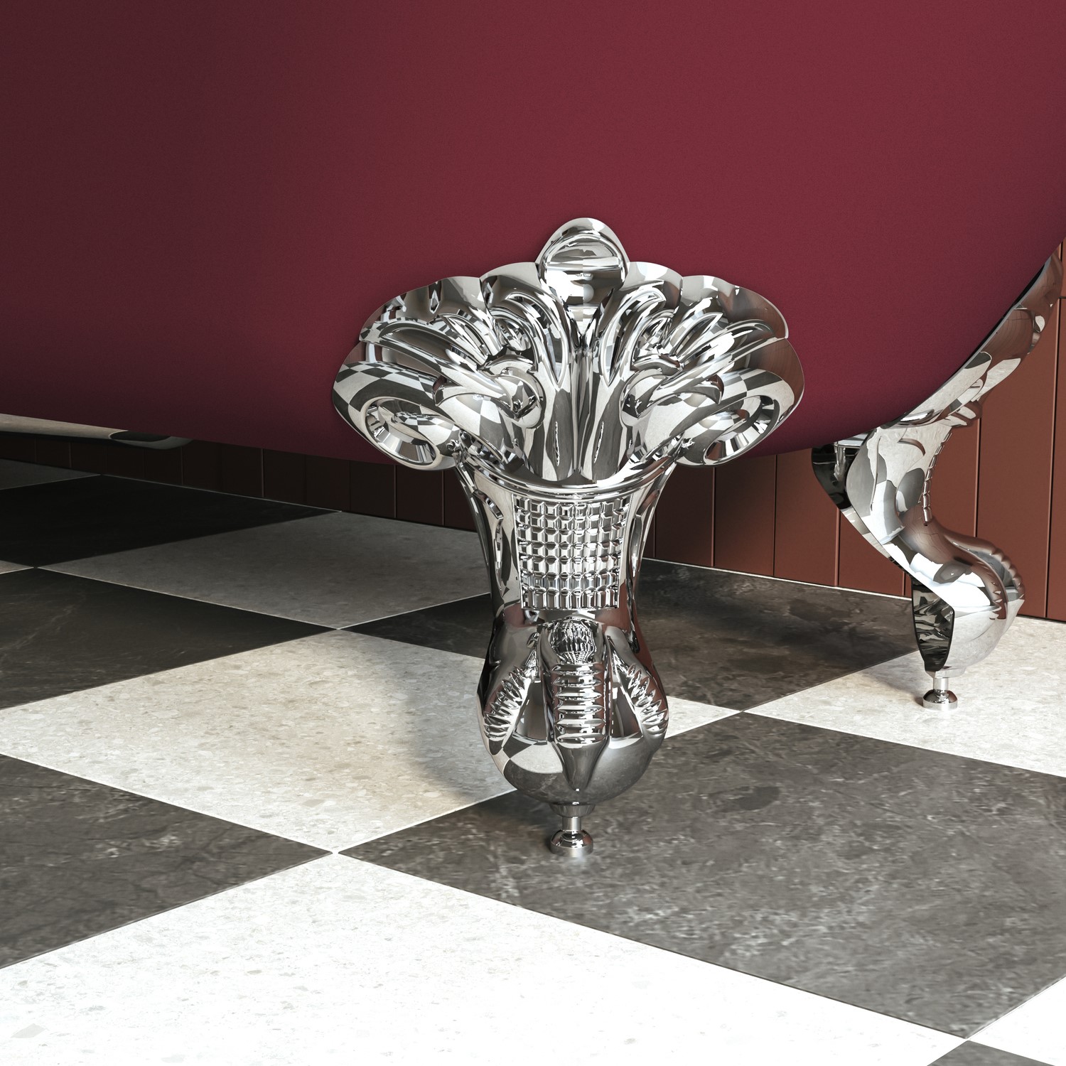 Chrome Detailing: Features polished chrome ball and claw feet and a coordinating black bath screen, which is movable 90 degrees inwards and outwards.