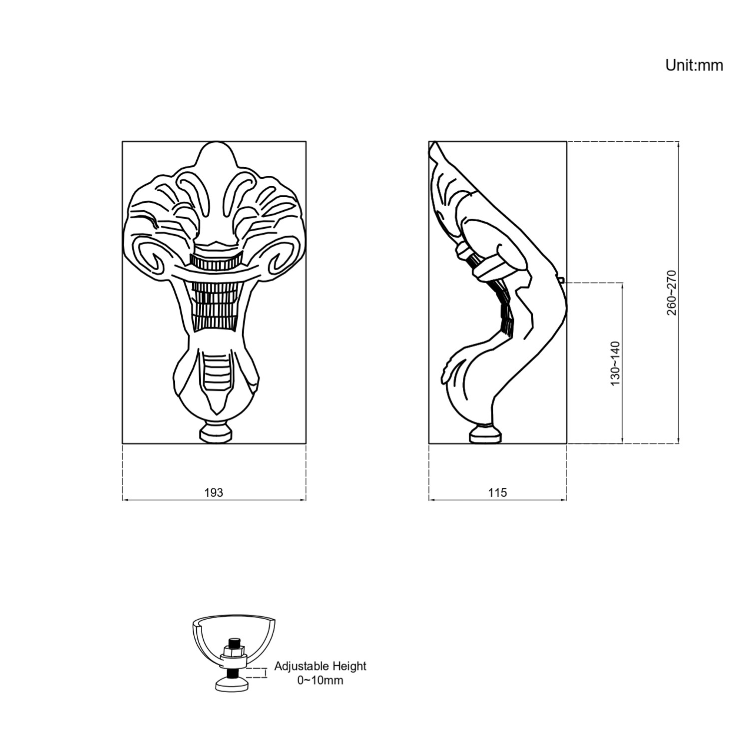 Adjustable and Secure: Polished chrome feet adjust up to 10mm for a stable installation on uneven flooring.