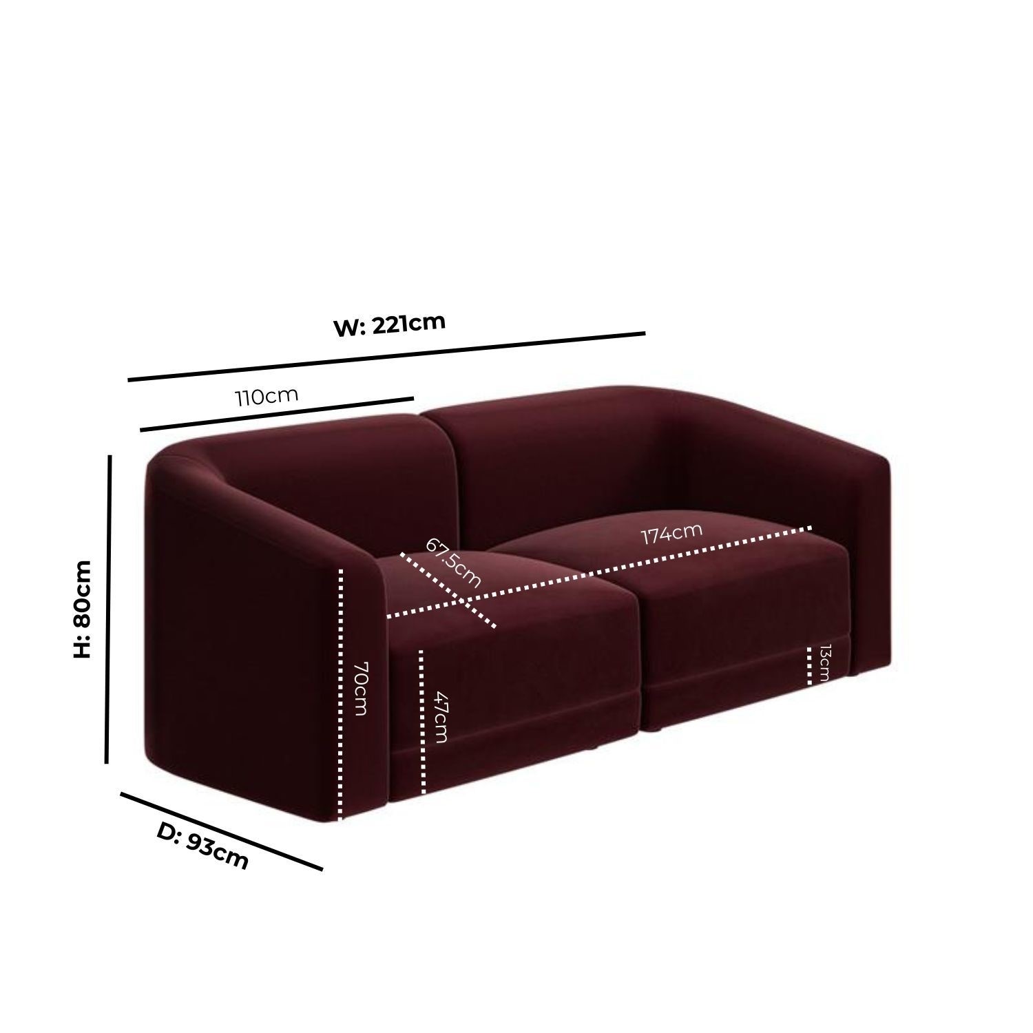 The Laine 3-Seater Modular Sofa combines modern design with gentle curves and a bold, rounded silhouette. Upholstered in soft, durable burgundy velvet, it adds a warm, inviting splash of colour to any living space. Designed as a family sofa, it features deep seats, a low-profile modular form, and foam with pocket springs for superior comfort and support. Spacious, stylish, and versatile, this sofa is the perfect place to unwind.