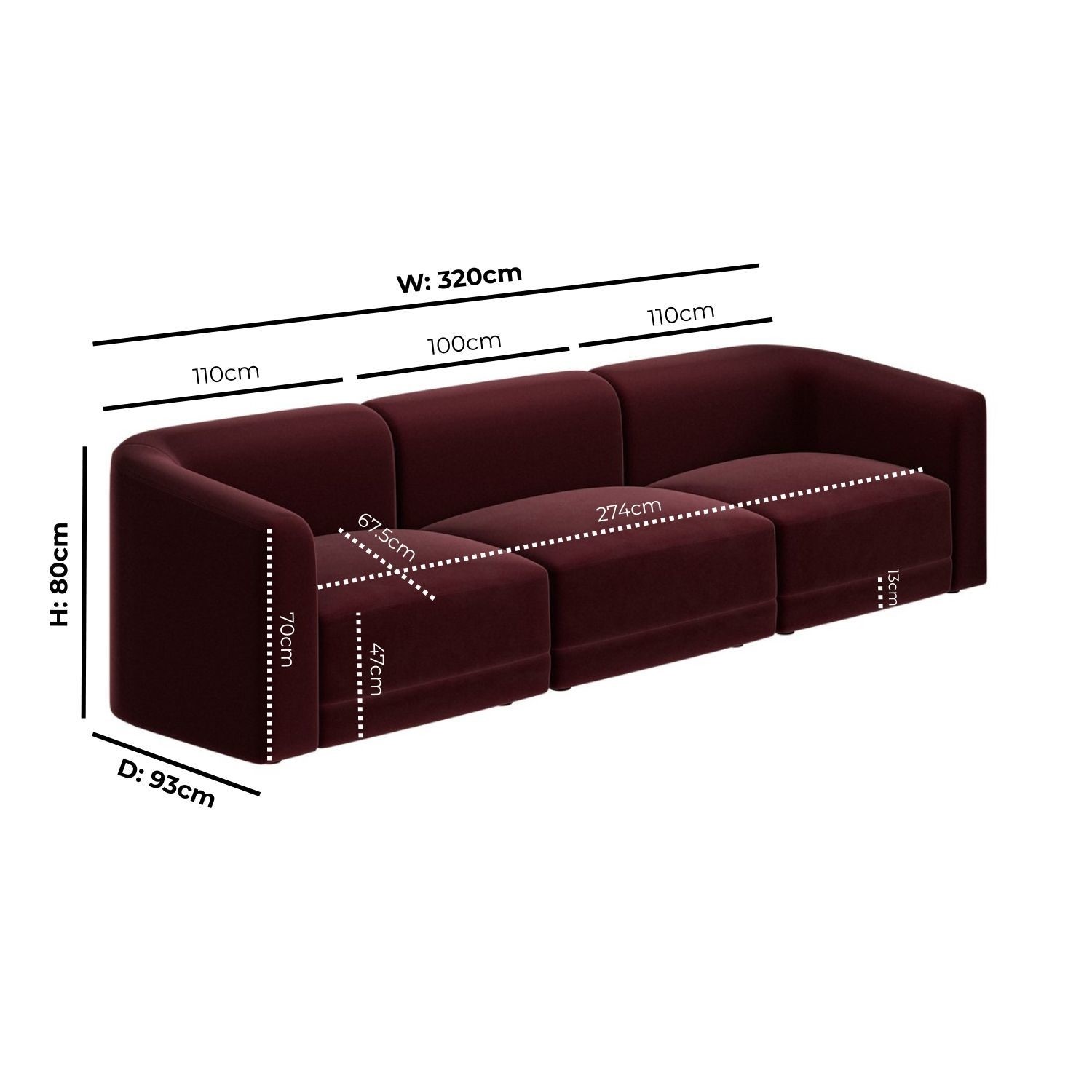 - Dimensions: W320 x D93 x H80 cm