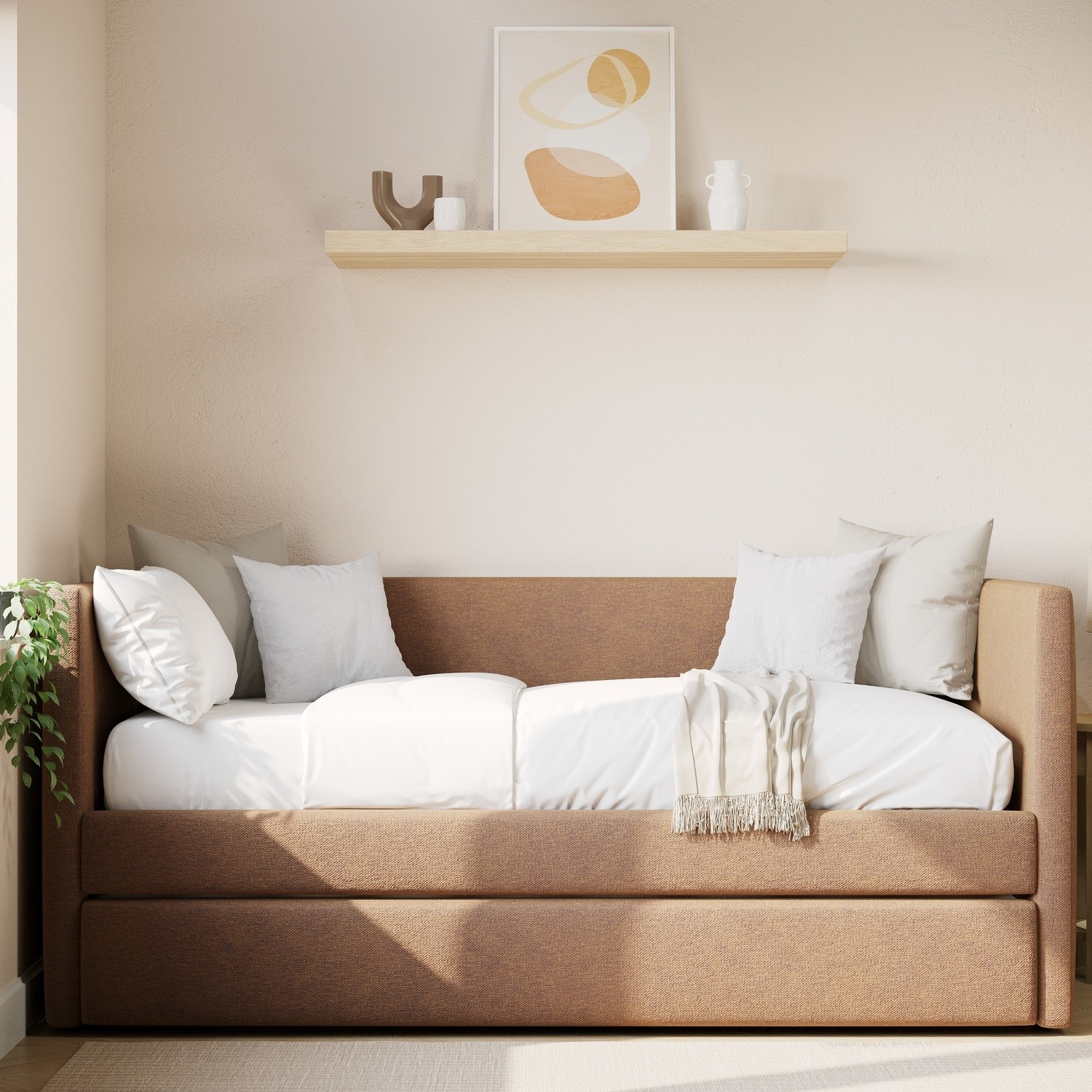 The Amie Day Bed with Trundle is the perfect blend of style and practicality, making it a great addition to any home. Upholstered in soft-touch burnt orange chenille fabric, it adds warmth and elegance to your space. During the day, it’s a comfy spot to relax, and at night, it easily transforms into two cosy sleeping spaces. The smooth pull-out trundle provides extra room for guests, making it a perfect choice for small rooms, guest areas, or multifunctional spaces.