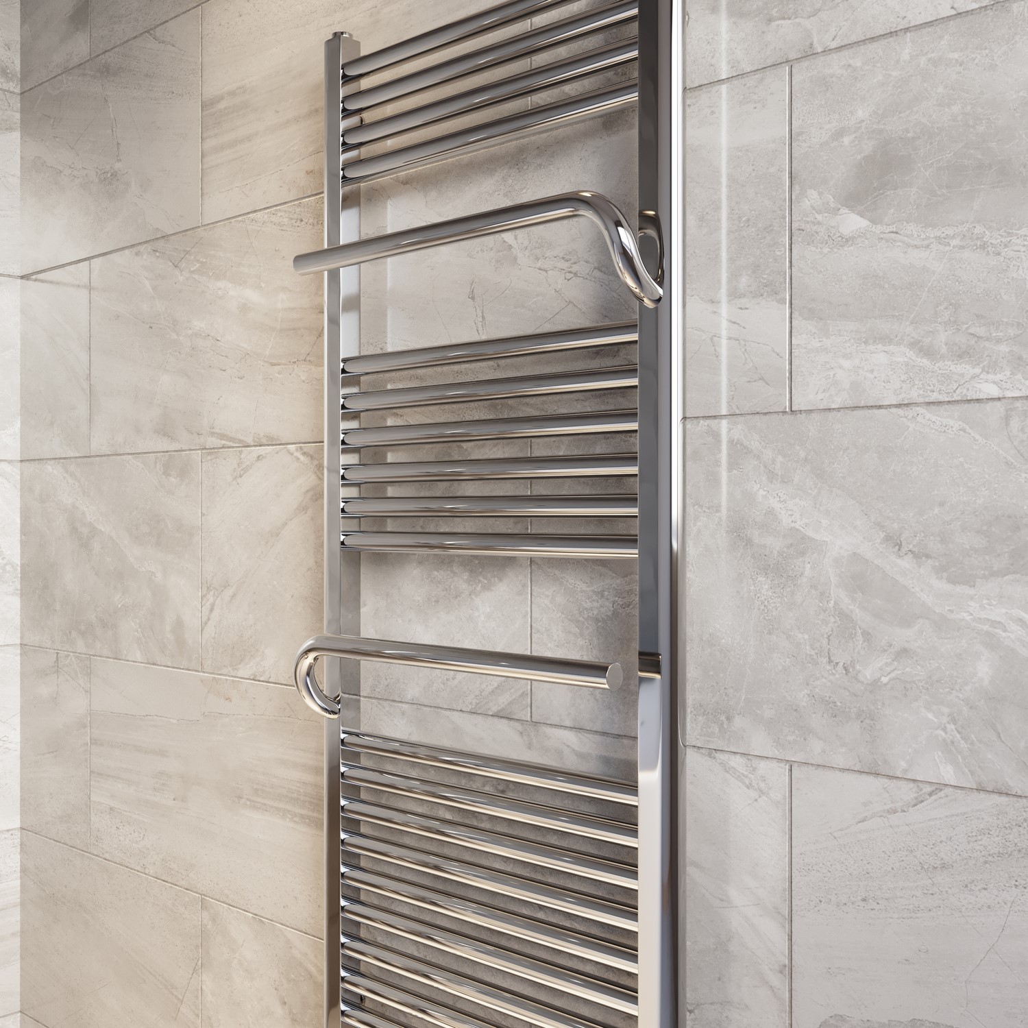 Sleek Chrome Finish: This chrome towel radiator brings a polished, contemporary look to any modern bathroom, adding a touch of elegance to your bathroom.