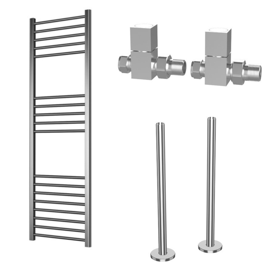Manufactured from quality steel with a corrosion-resistant chrome plating, this towel rail is built to withstand typical bathroom humidity and everyday use. The included chrome pipe sleeve covers hide exposed pipework between the valves and floor for a refined, professional finish. Complementing this kit, the chrome square straight radiator valves complete the coordinated look with a subtle modern touch.