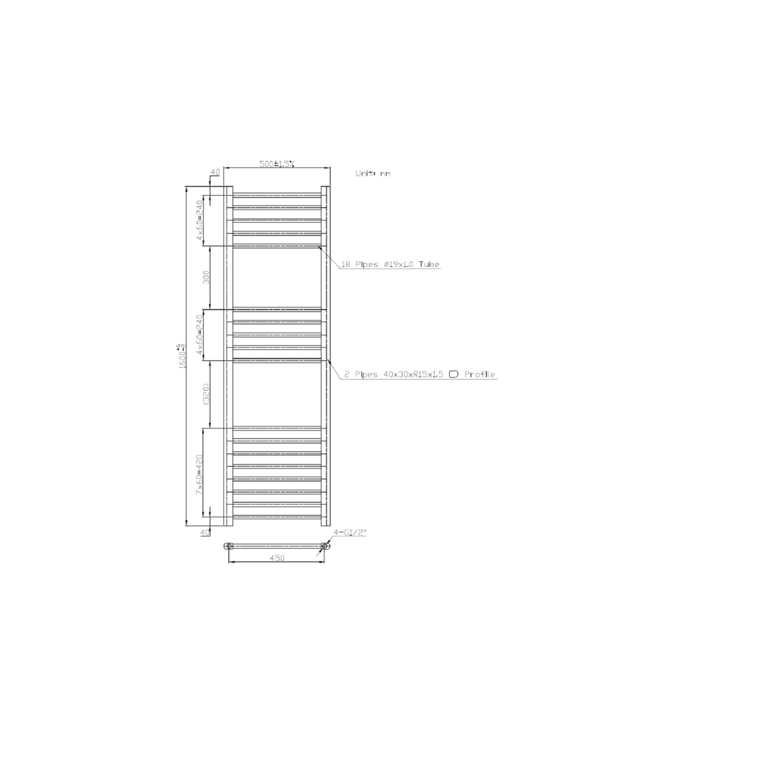 - Radiator Dimensions: H1600mm x W500mm x D30mm