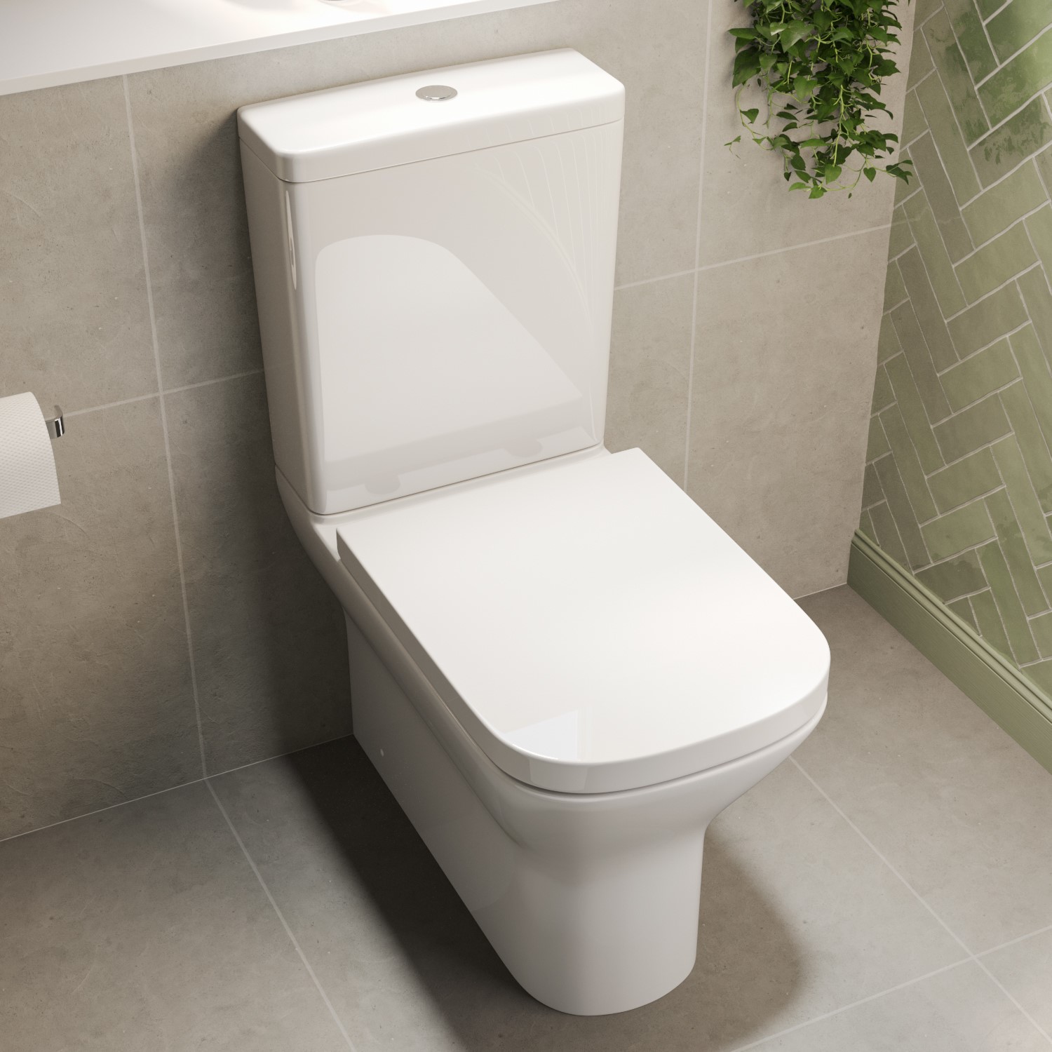 Simple, stylish and built to last — the Palma Close-Coupled Toilet blends functionality with a contemporary design. Crafted from high-quality ceramic, its rounded pan brings a soft edge to your space, while the close-back structure neatly conceals plumbing for a seamless look. The soft-close seat made from Urea-Formaldehyde resists scratches, stains and heat, offering a ceramic-style finish that stays looking new. With a dual flush system and a chrome push button, it offers a sustainable, water-saving solution with every use.