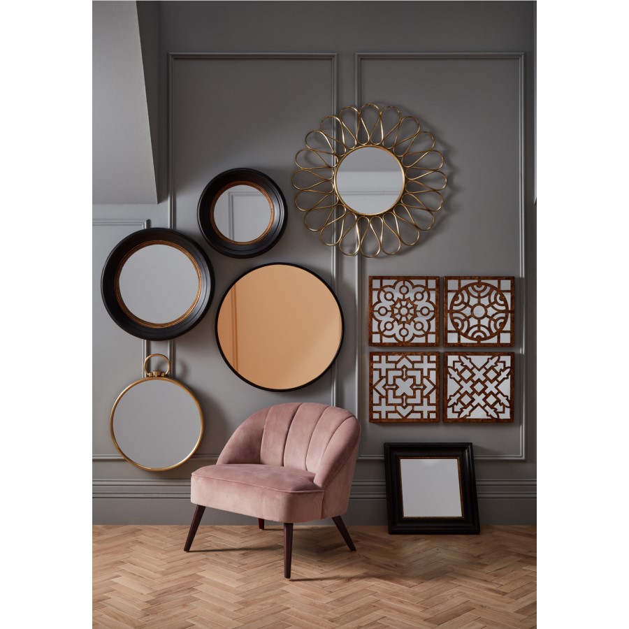 A sleek and sophisticated addition to any room, this Coen rose gold mirror with a black wooden frame is beautifully simplistic and will look stunning on any wall of your home.