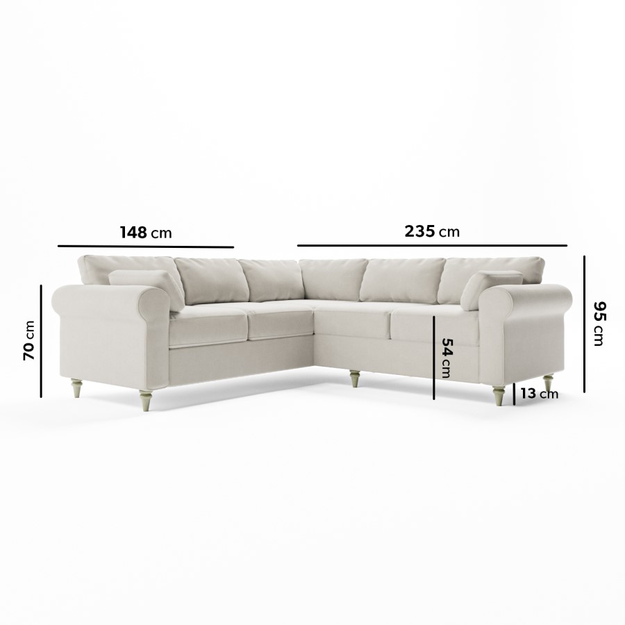 Complete your living room with this cosy corner sofa with modern scroll arms. There's plenty of room to sit, put your feet up and relax for the whole family. It features a zig-zag pocket sprung internal base and reversible high-back cushions filled with 100% polyester fibre, making it luxuriously comfortable without worrying about shape loss. It's a quality build, too, thanks to its sustainably sourced solid timber frame. It comes in two parts, so you'll have it assembled and ready to use in no time.