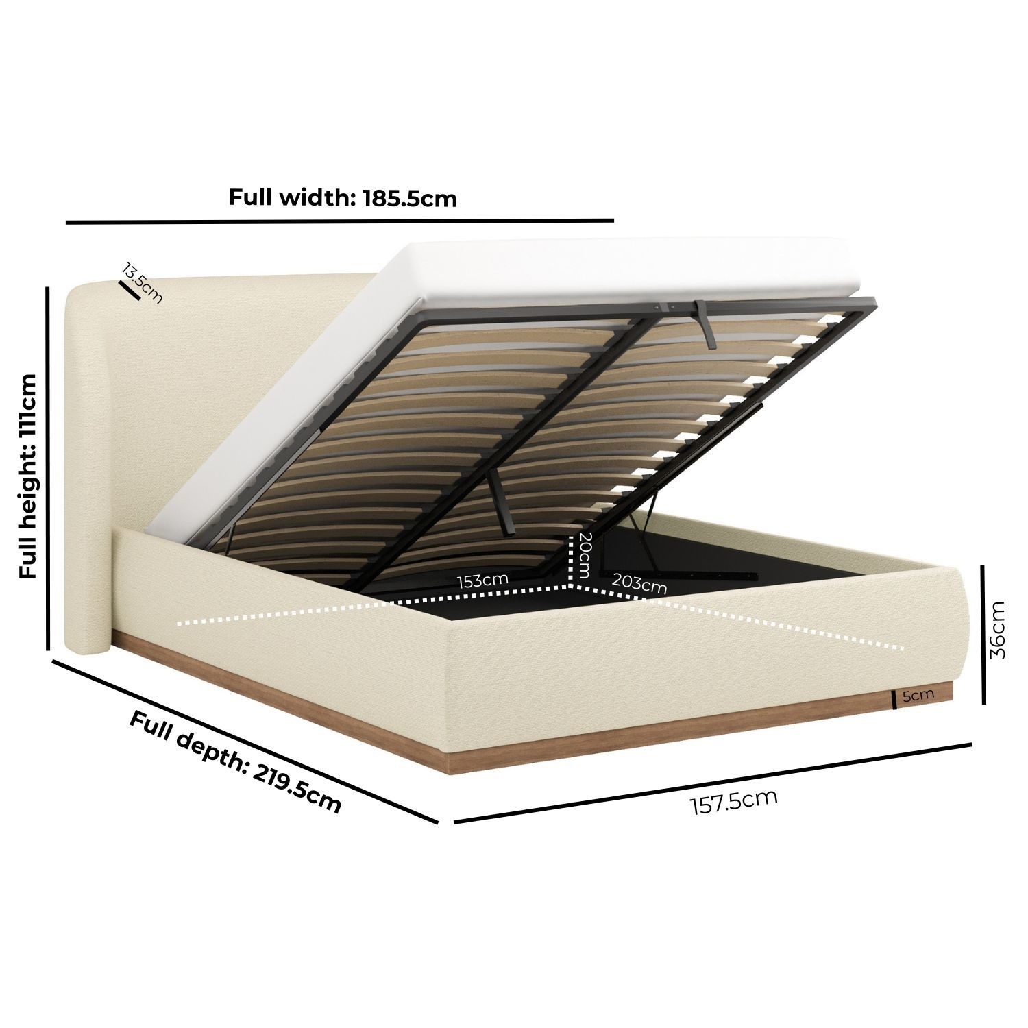 Blending comfort with contemporary design, this ottoman bed makes a statement in any bedroom. The curved upholstered headboard adds a soft, contemporary elegance that instantly elevates the space, while its generous padding delivers a luxuriously plush feel for relaxing or reading in bed. The walnut-effect plinth base introduces a subtle mid-century influence, bringing warmth and texture that beautifully complements the fabric upholstery. Beneath the sprung slatted base, a spacious hidden storage compartment offers a practical solution for keeping spare bedding and essentials neatly tucked away. Combining elegant styling with everyday functionality, this ottoman bed is perfect for creating a serene, minimalist bedroom that feels both refined and inviting.