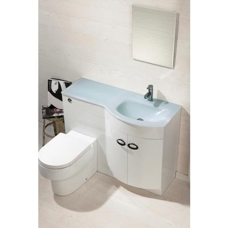 This ultra-modern Curve toilet and sink vanity unit is ideal for those with a busy morning routine. With ample room for products and easily accessible, cushioned cupboards, you can get ready with ease. The set is available in a left or right handed design depending on the layout of your bathroom. Includes basin, basin unit & WC unit. Please note: tap and toilet not included. Finished in Gloss White, the unit is not only practical but has a pristine, elegant aesthetic. The chrome effect handles can also be matched with other products from our range for a contemporary look that flows throughout your bathroom.