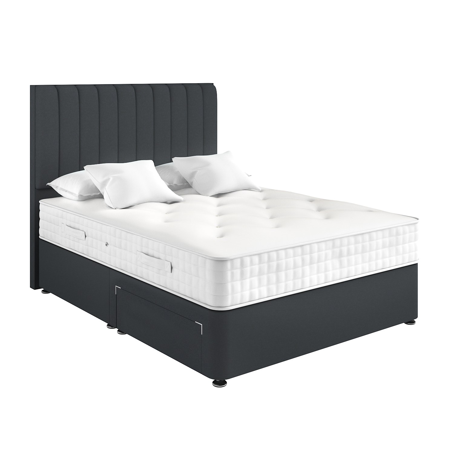 Dark Grey Fabric King-size Divan Bed with 2 Drawers – Langston