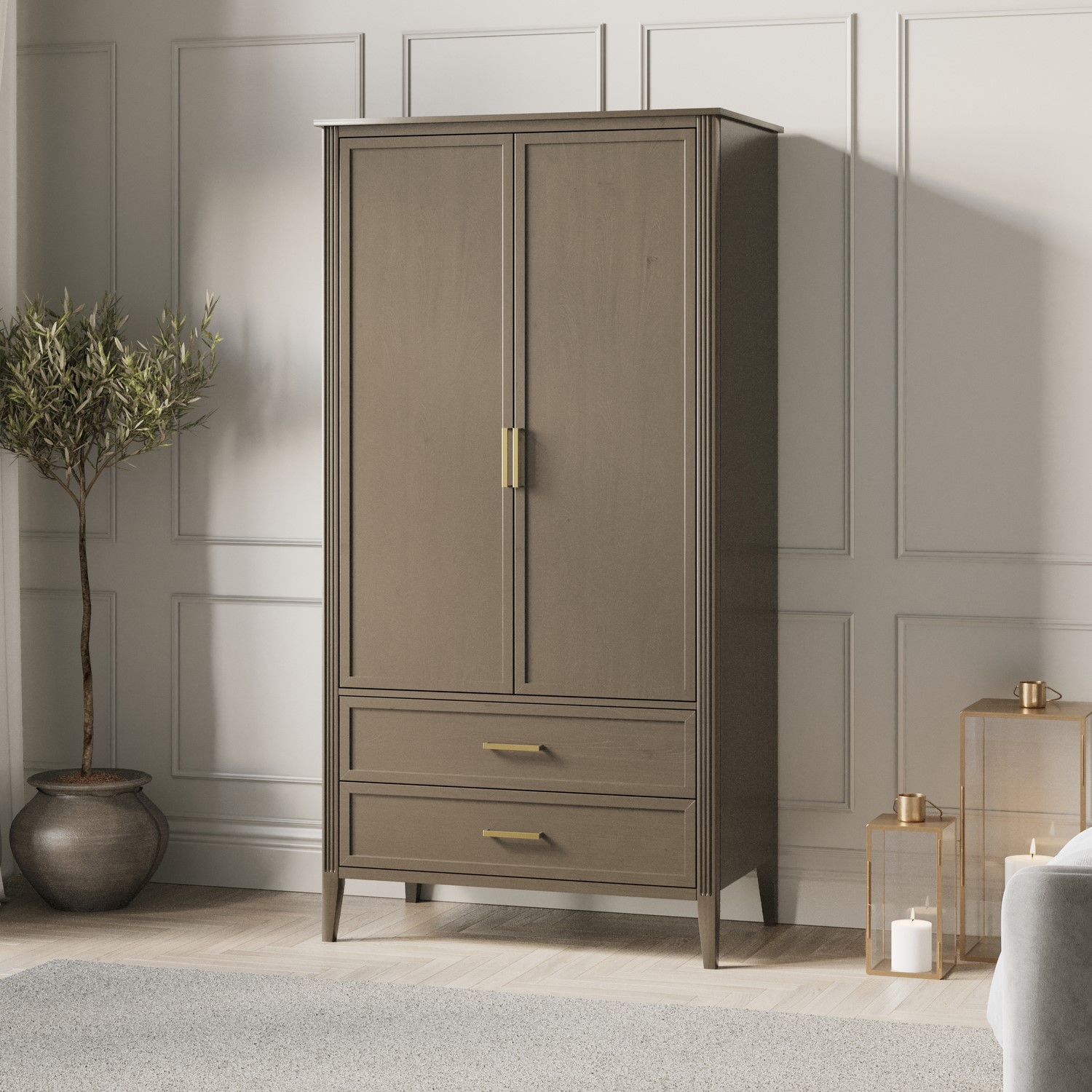 The Delilah Dark Wood 2 Door Wardrobe is a beautifully crafted storage solution, designed to bring timeless elegance and practical functionality to your bedroom. With two full-height doors and two large drawers, it offers a generous mix of hanging and folded storage, helping you keep everything from coats to knitwear in perfect order.