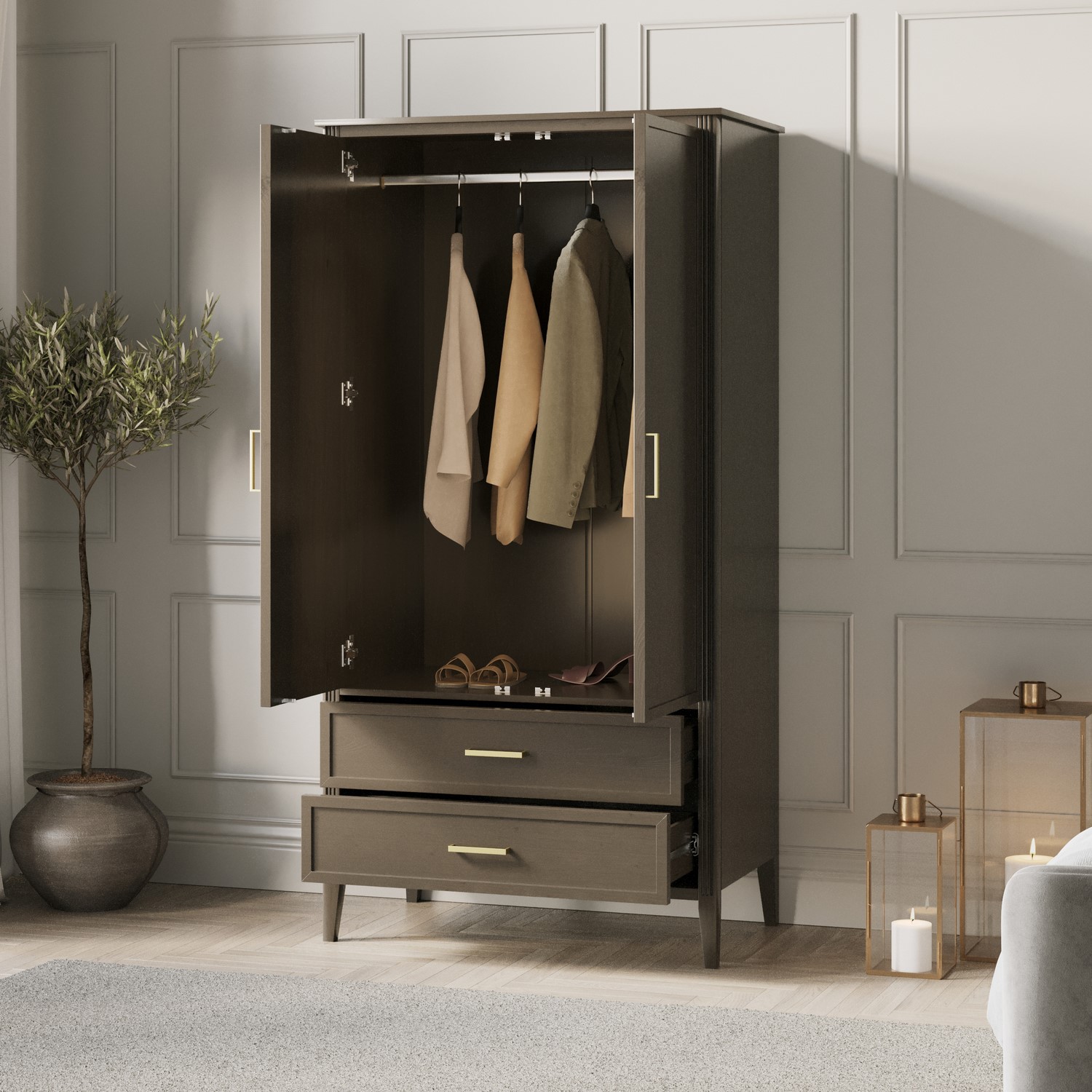 A wide internal rail provides plenty of space for clothing, while the base drawers with smooth metal runners are ideal for accessories or bedding. Made mostly from solid pine, this wardrobe combines natural durability with a deep, dark wood finish that adds richness and warmth to any room. Whether you're refreshing your master bedroom or upgrading a guest room, Delilah’s classic design and ample storage make it a standout addition to any interior.