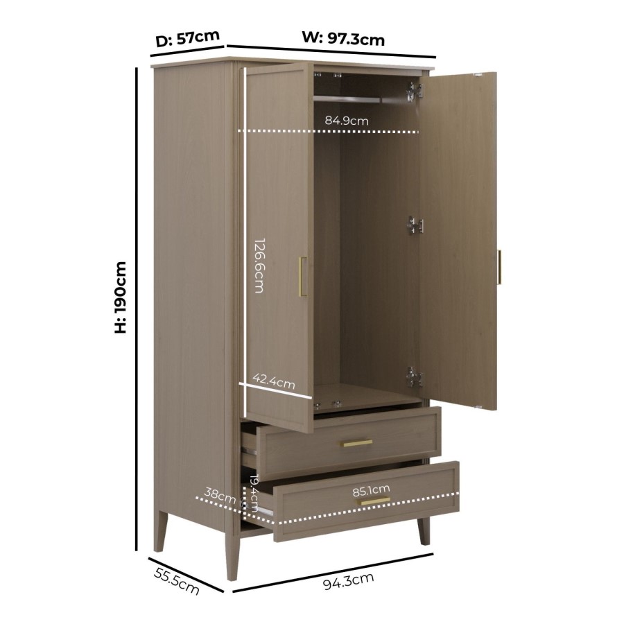 Generous Double Wardrobe Design: Combines spacious hanging space and drawer storage in one sleek and practical piece.