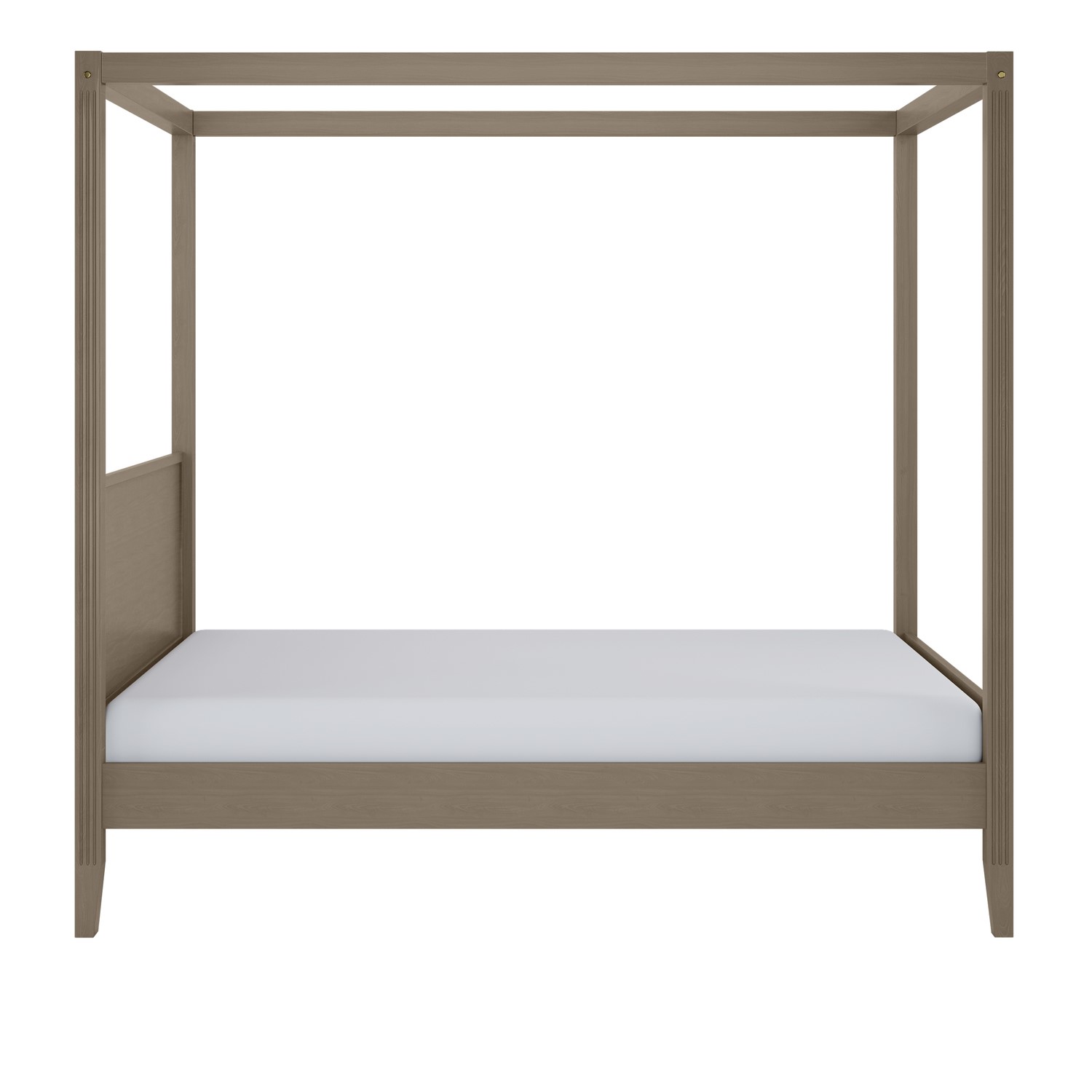 The Delilah Four Poster Bed Frame makes a classic statement, defined by its clean, structured silhouette. Crafted from solid pine and finished in a dark wood stain, this timeless piece is a modern twist on a usually classic design. Sophisticated details elevate its appeal, with fluted sides and subtle golden accents adding a refined layer of elegance. The built-in headboard maintains a seamless, polished look, while the raised base reveals generous underbed storage. Complete with a sturdy slatted base, Delilah ensures both support and a restful night’s sleep.