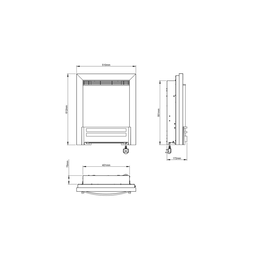 - Easy install inset electric fire, suitable for flat wall installation in 75mm rebated surrounds