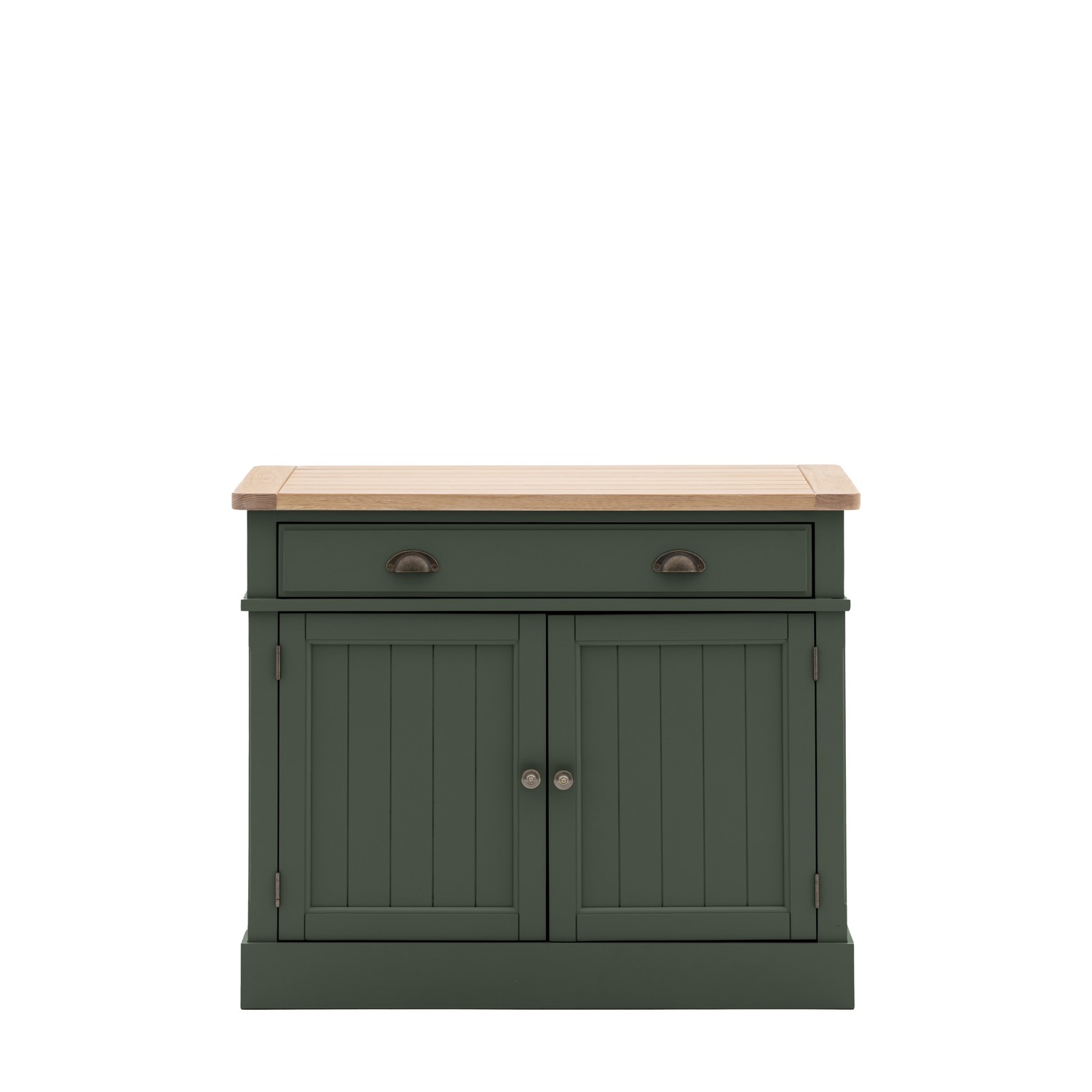This sideboard combines traditional charm with contemporary style. Offering practical storage with a single large draw and 2 door cupboard with adjustable shelves, there's plenty of storage space. The combination of the grooved & planked oak top with hand painted textured finish base, grooved doors and traditional style metal handles gives the sideboard a modern twist on a country classic style.