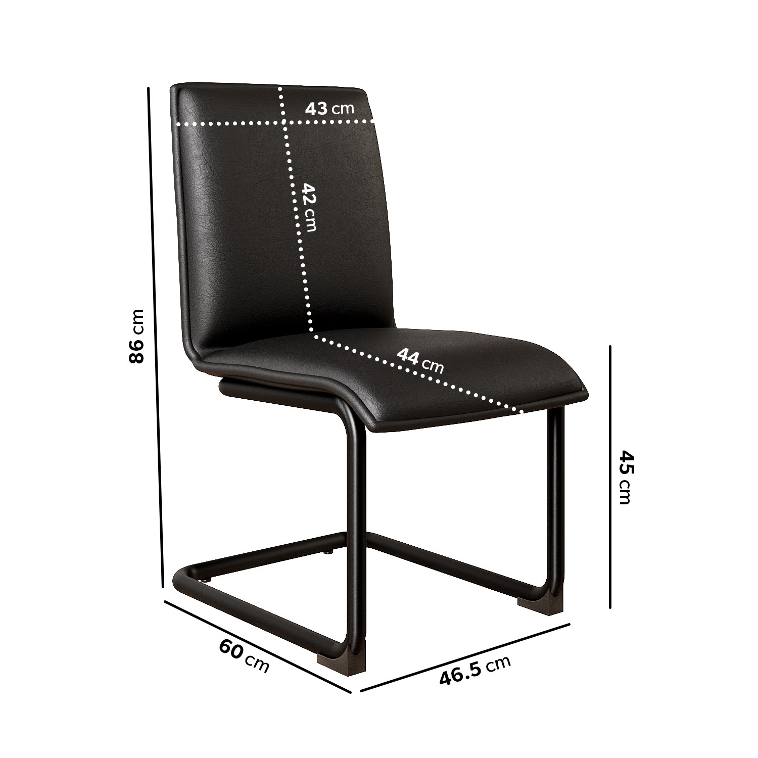 4 x Black Faux Leather Cantilever Dining Chairs - Lucas