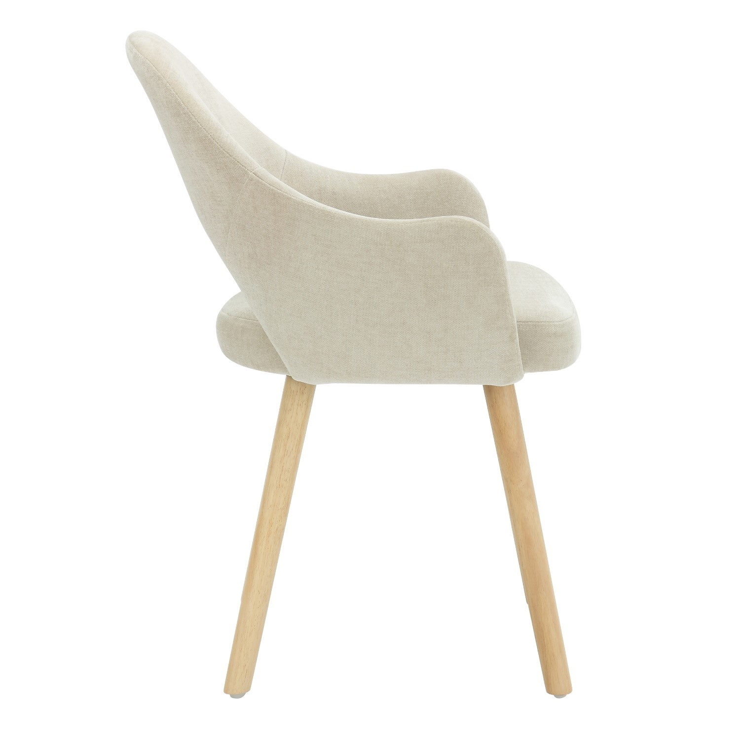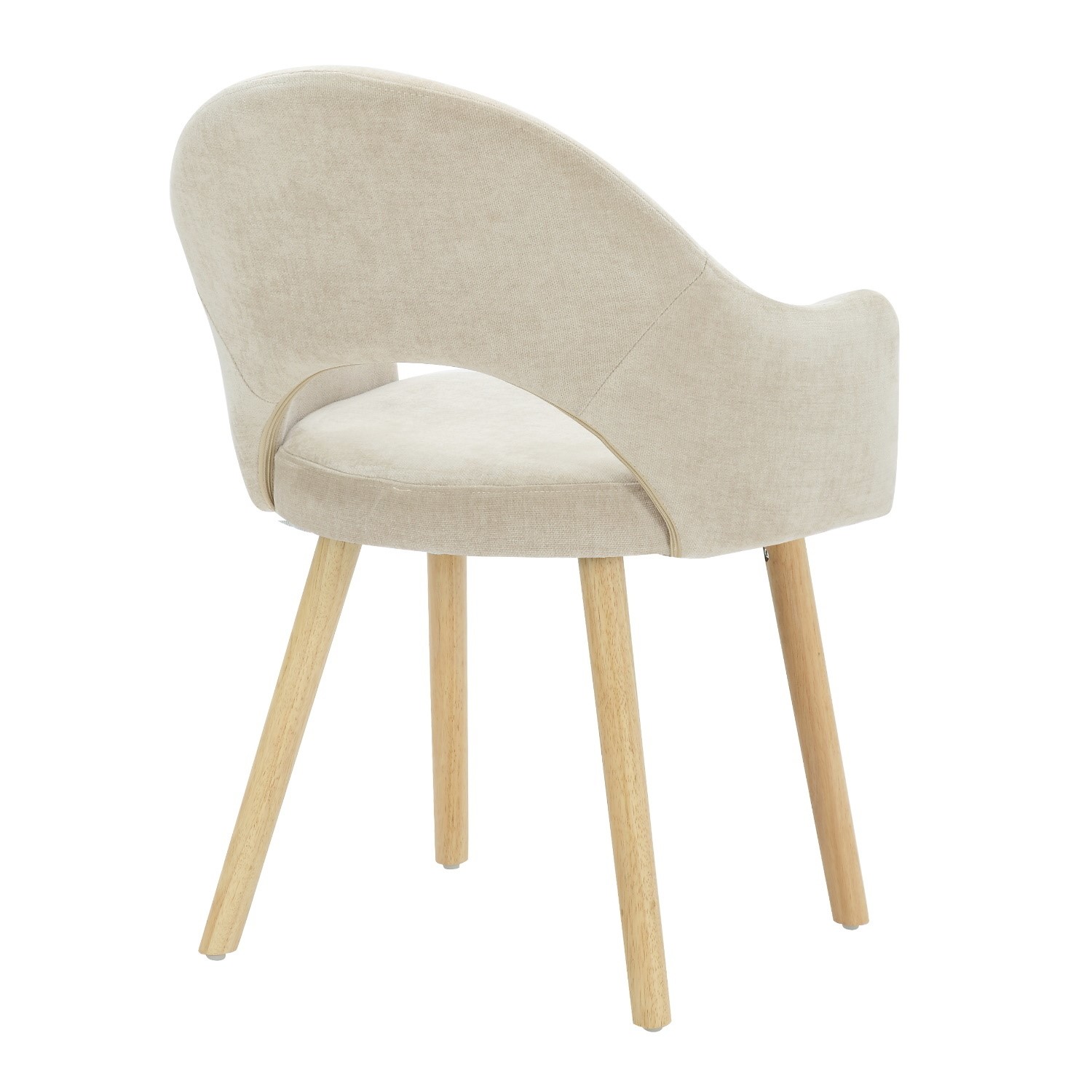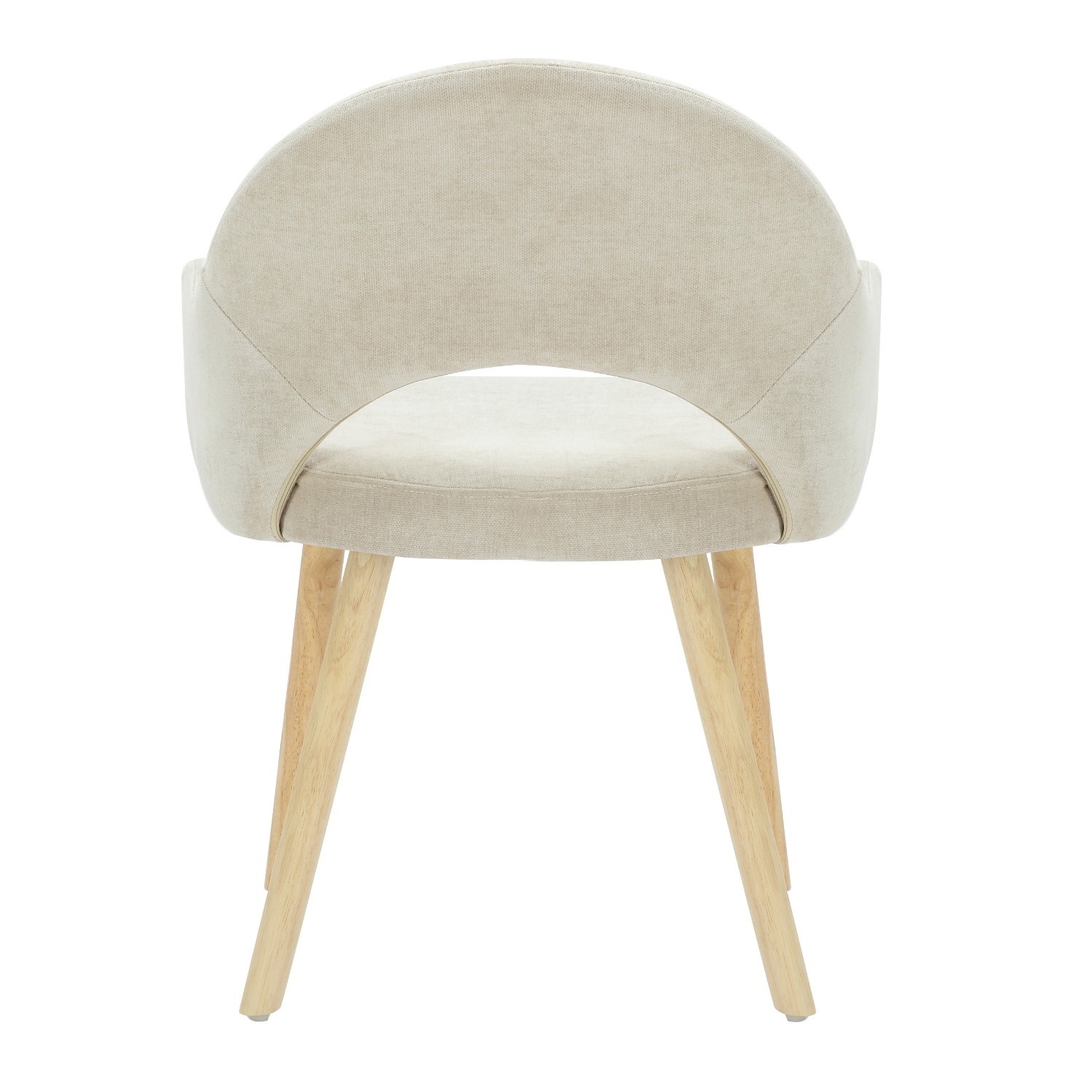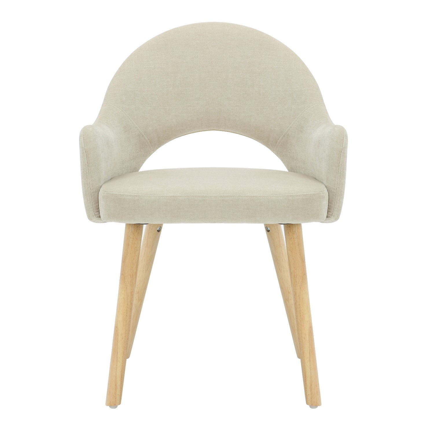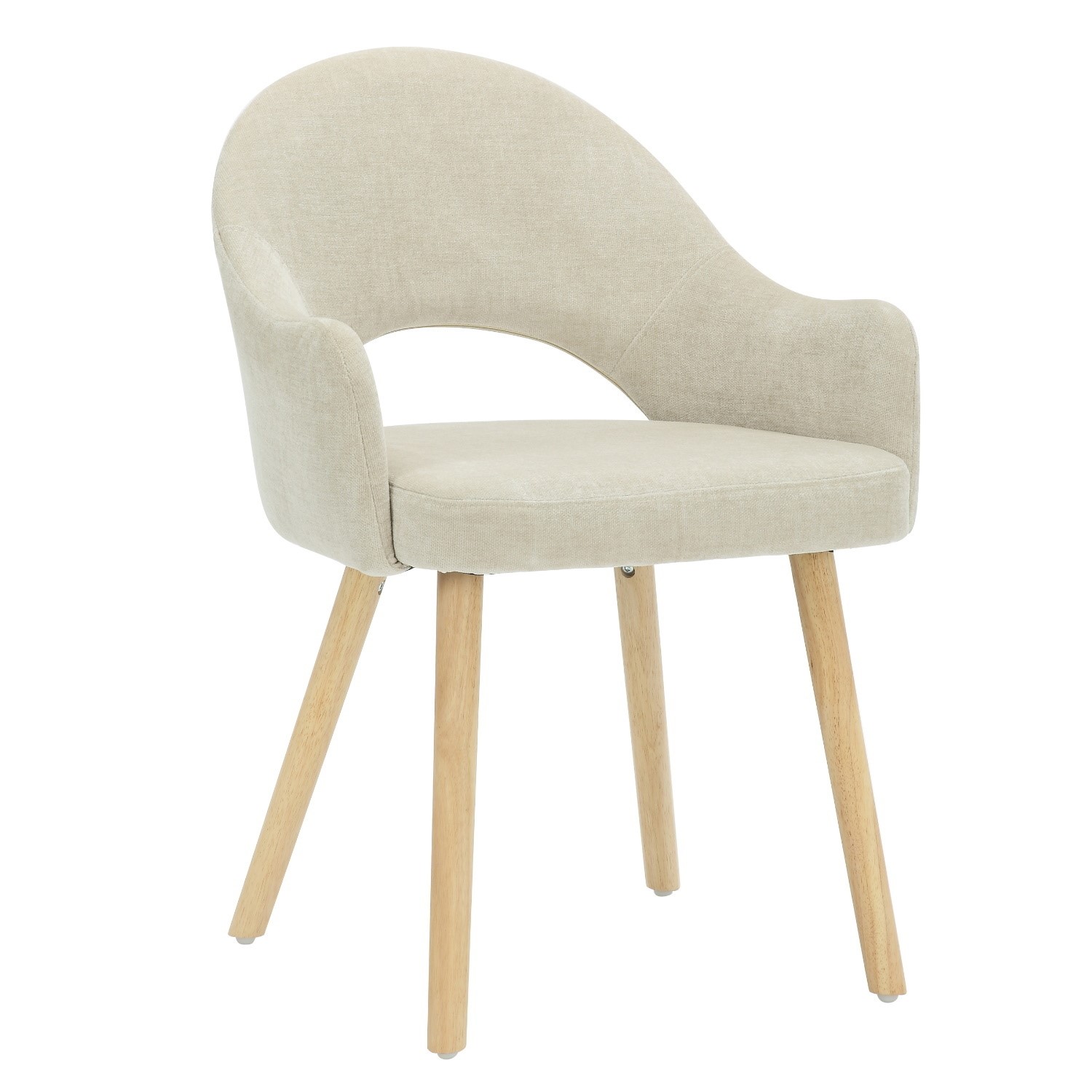 - Finish: Beige textured chenille fabric with sleek oak legs