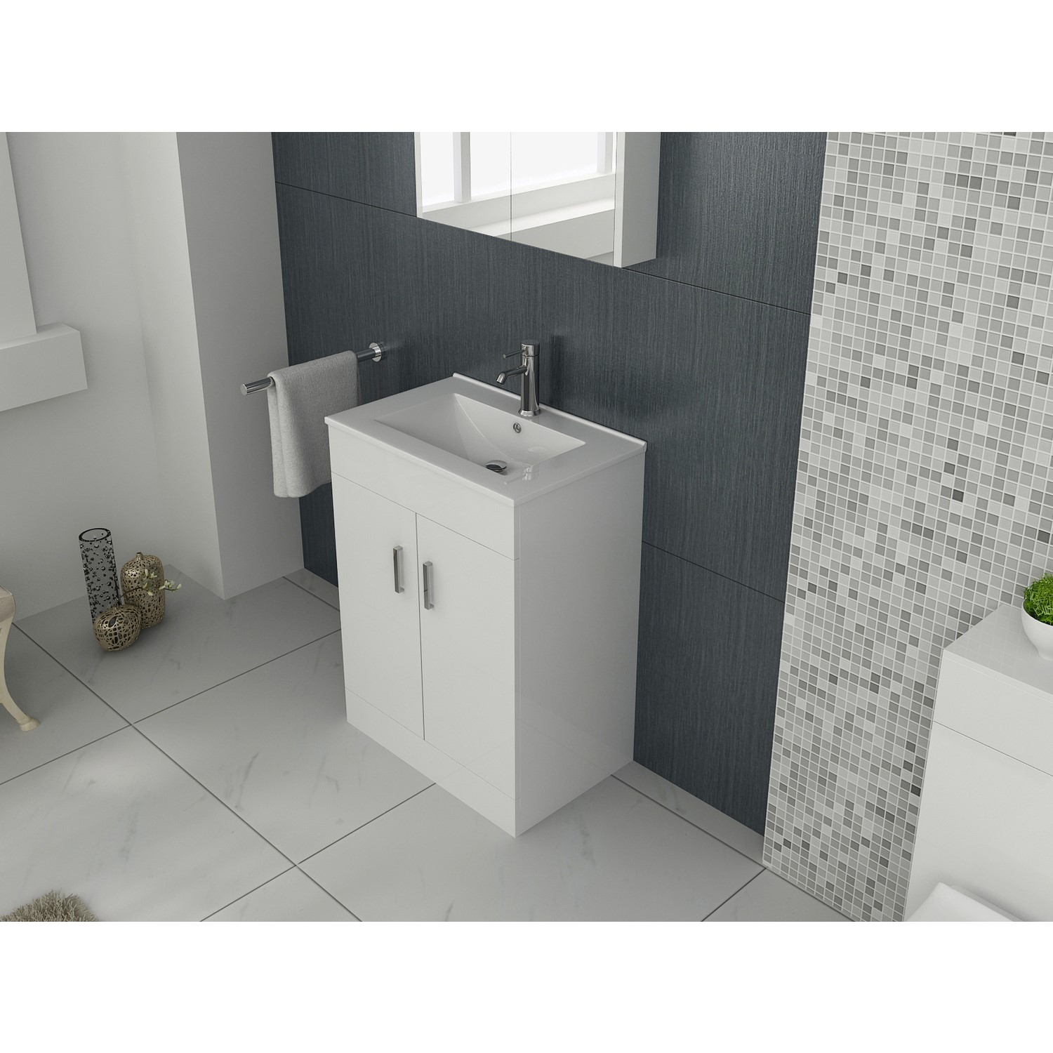 - Basin finish: White