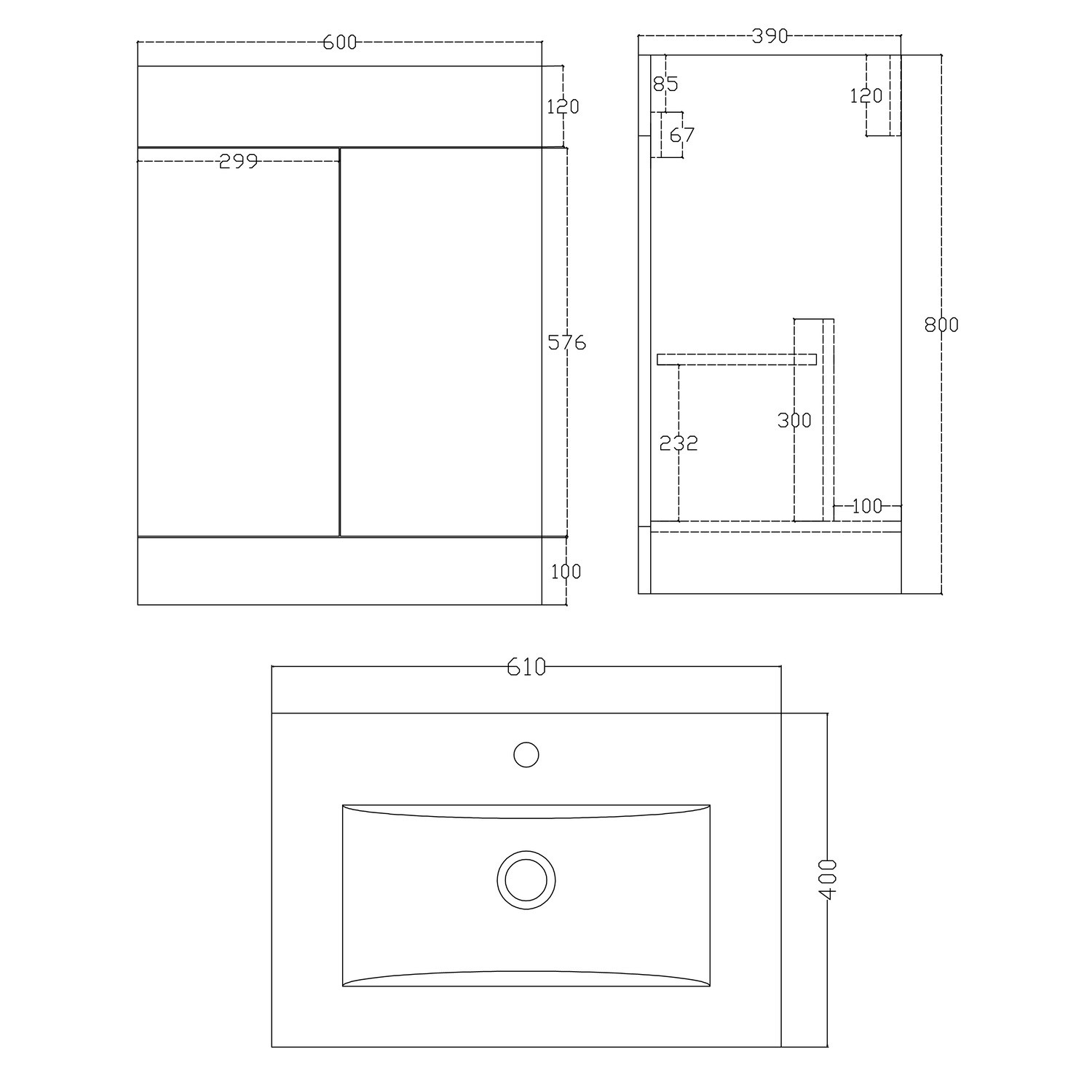 - Basin material: Ceramic