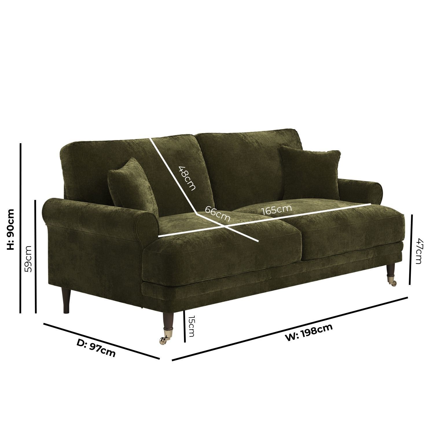 Experience refined comfort with the Payton Heritage 3-Seater Sofa, a timeless update of our beloved classic. Its elegant scrolled arms, tiered border, and rich forest green chenille upholstery bring warmth and sophistication to any home. Generous feather-filled cushions offer cloud-like softness and support, making it perfect for relaxed family moments or welcoming guests in style. Removable seat and back cushions keep cleaning and maintenance easy, allowing the Payton sofa to withstand everyday use while retaining its timeless beauty, offering lasting comfort and style for many years.