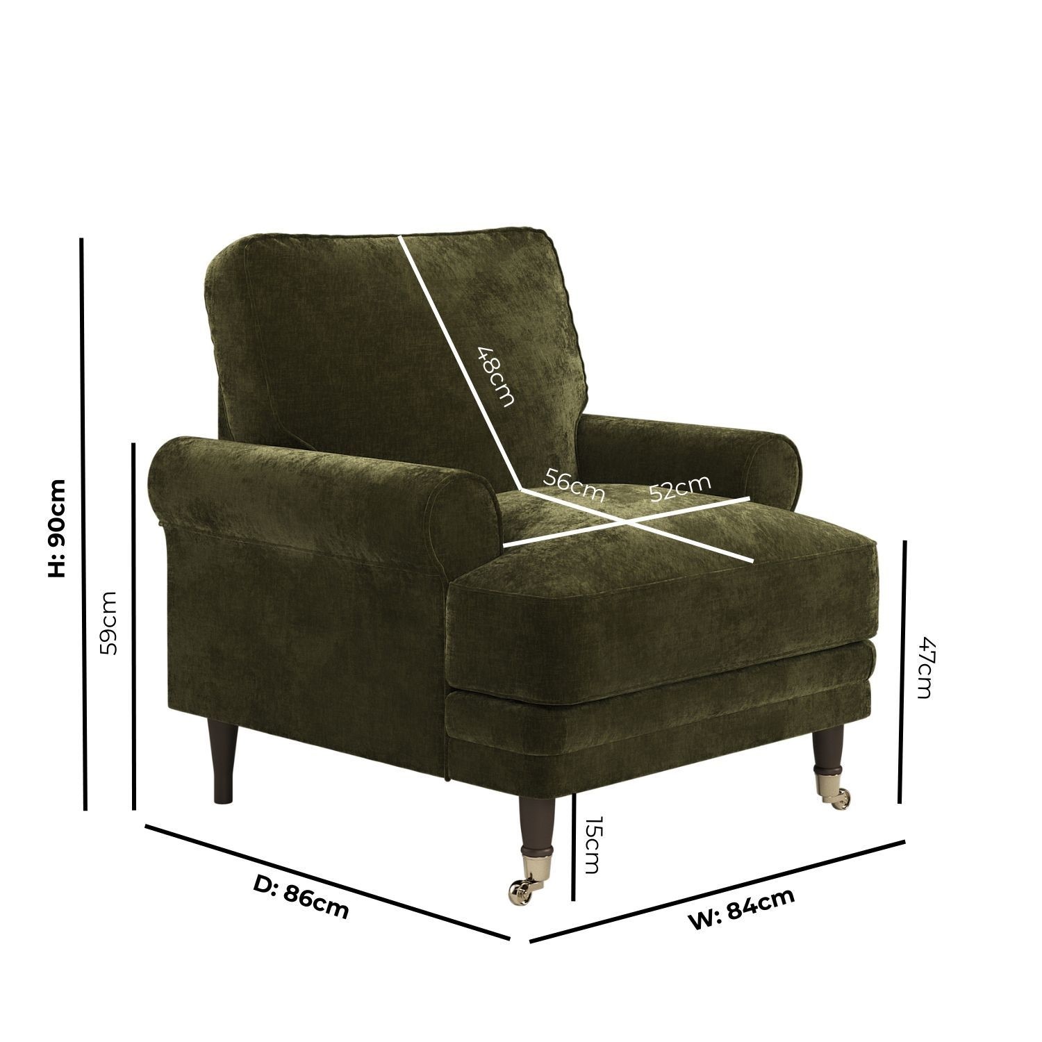 Crafted from a distinctive chenille fabric that features a rich, soft texture, enhancing the armchair’s luxurious look while delivering lasting comfort and durability.