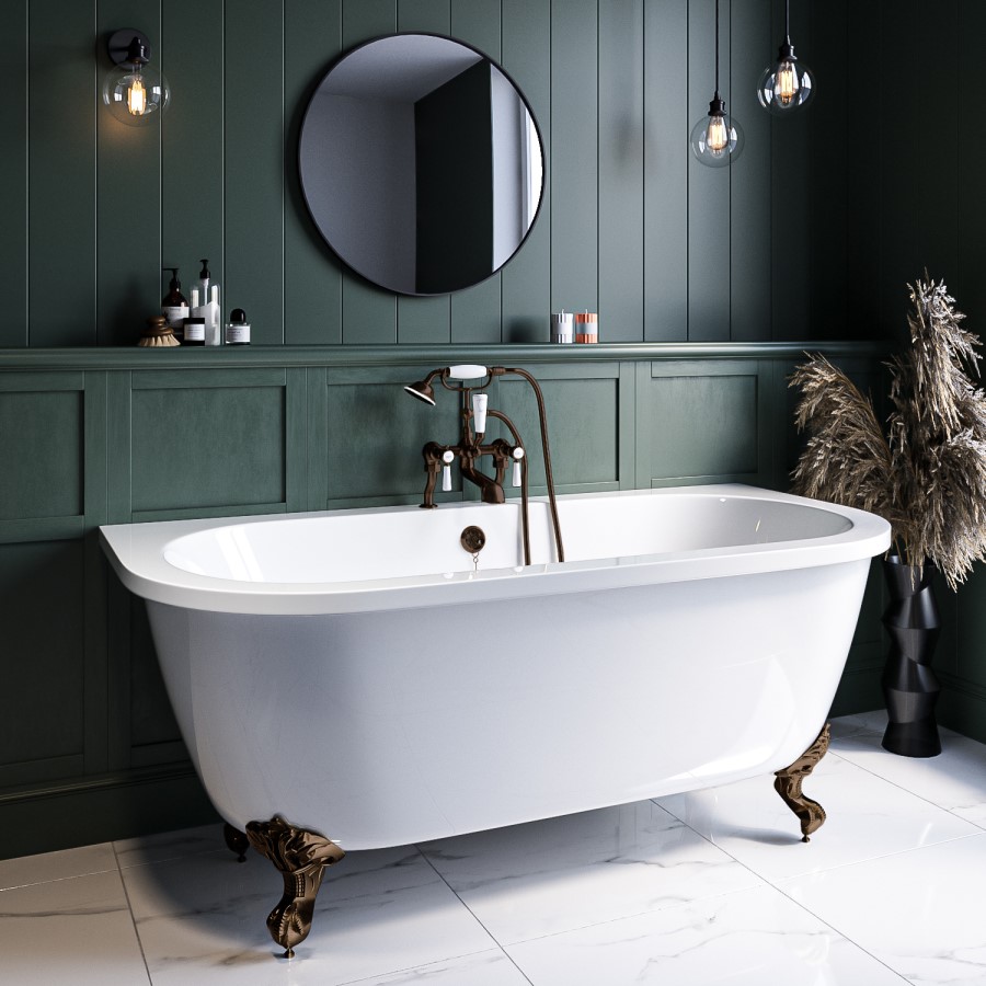 Create a grand statement with this traditional freestanding bath, combining classic elegance with modern functionality. Roll-topped and double-ended, it features smooth, curved edges for a luxurious and relaxing bathing experience at either end. The glossy finish enhances its timeless appeal, while the beautifully ornate brushed bronze ball and claw feet add a striking contrast, making it a true centrepiece in any bathroom.