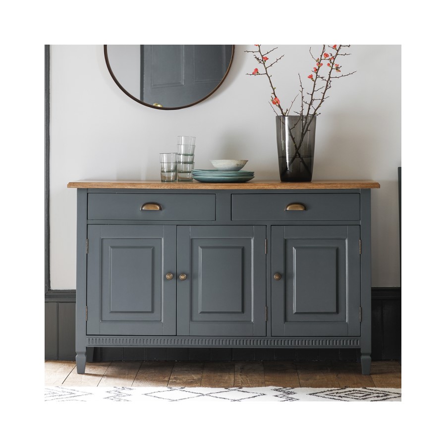 The Bronte sideboard in Storm is a beautiful and classic piece featuring 3 cupboards and 2 drawers.