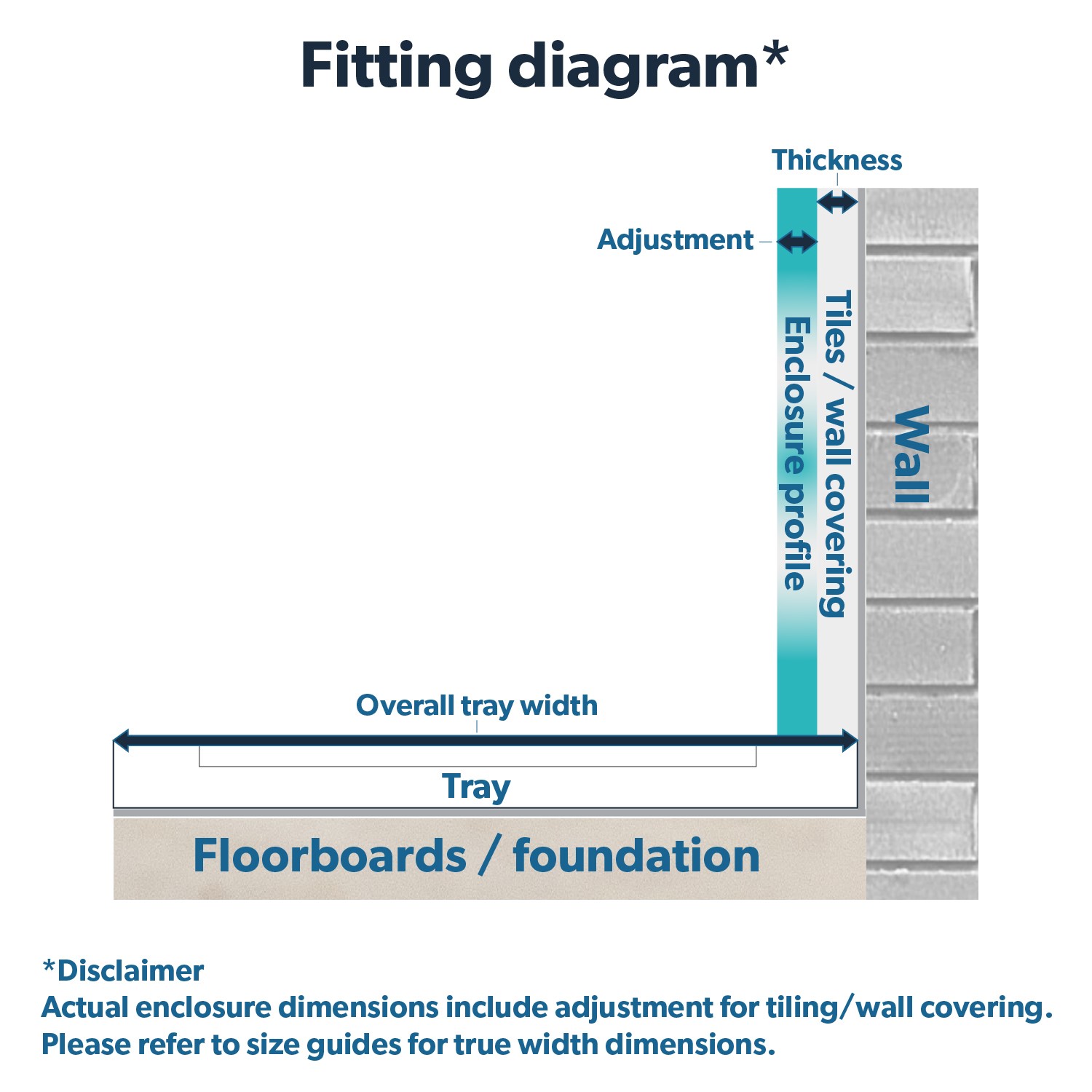 - The shower tray, waste trap, tray riser kit, and shower are sold separately