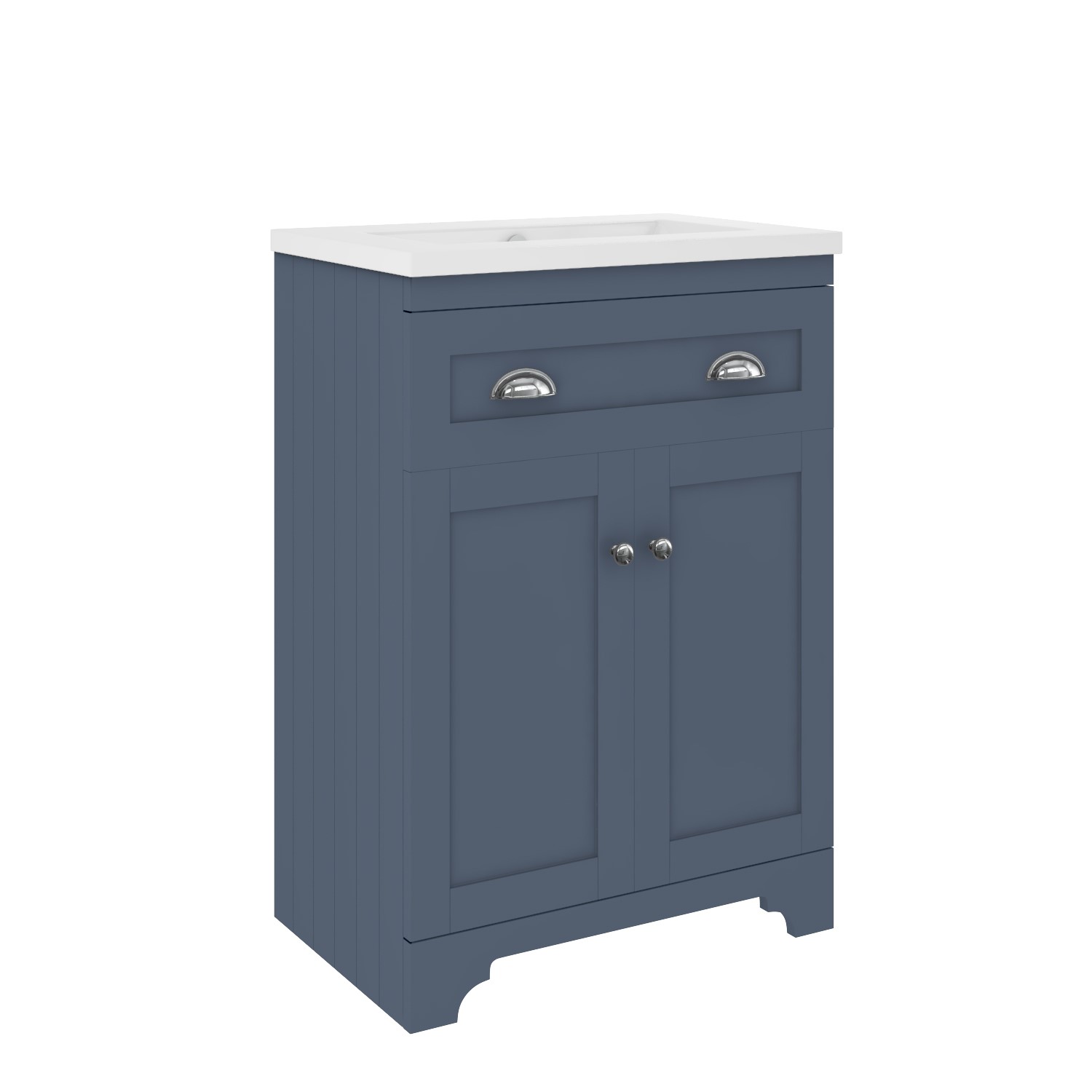 Enhance your bathroom with this Baxenden floor standing vanity basin unit. Characterised by a classic tongue-and-groove side panelling, cup style handles, an ornate front skirting and a matt white finish, it has that traditional meets modern styling that'll look great in any style of bathroom.