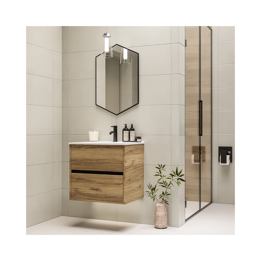 Make the most of your bathroom floor space and get the look of a high-end boutique hotel with this stylish vanity basin unit. With a minimalist handless opening and an oak wood effect finish, it’ll add elegance to any bathroom. A high-quality ceramic inset basin is included; a tap isn’t included, so you’re free to choose the tap of your choice. No assembly is required, just secure the basin, install your chosen tap and get to using it right away. There are various colourways and widths also available in the Roxbi range.