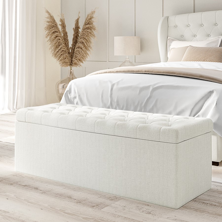 Add a stylish touch to your home with this Safina ottoman blanket box. With a comfortable, padded and button tufted top lid, it not only makes an attractive storage solution but would also look great as a window seat or end of bed bench.