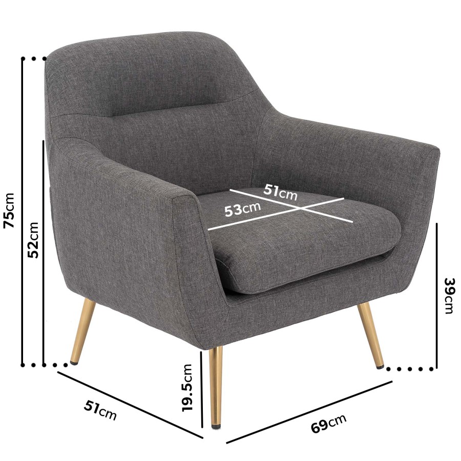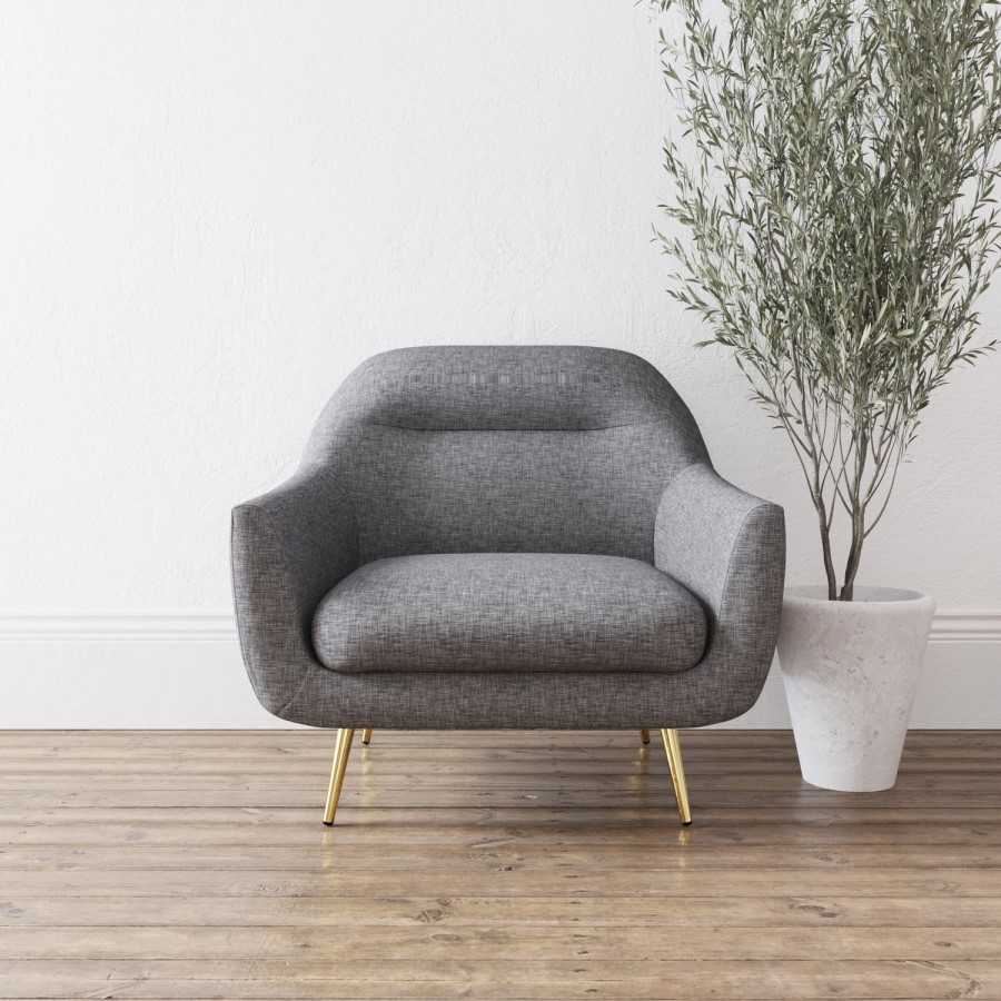If you enjoy comfort mixed with mid-century design then the Kiko woven armchair is for you. Its comfy padded seats are upholstered in high quality woven fabric and the back is tastefully finished with stitching detail. Simply attach the tapered gold legs and you are ready to sit back and relax.