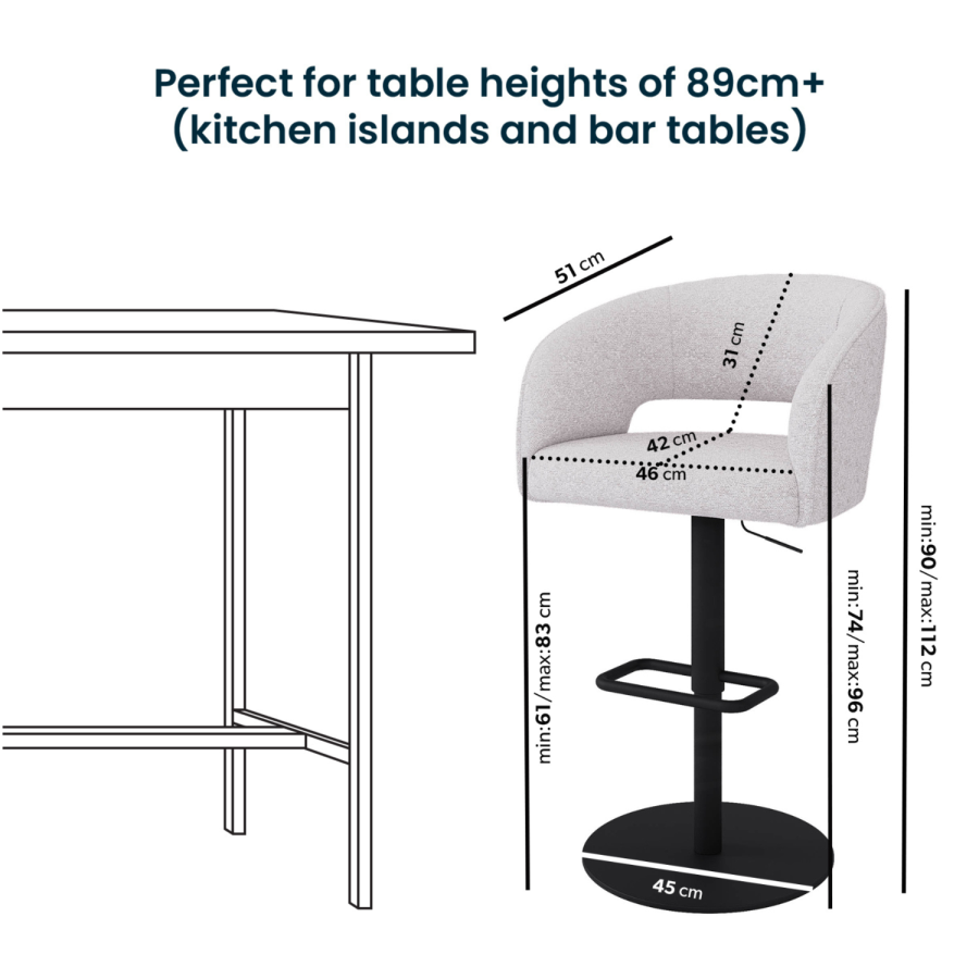 Suitable for bar tables and kitchen islands with heights of 89-109 cm, please measure before purchasing.