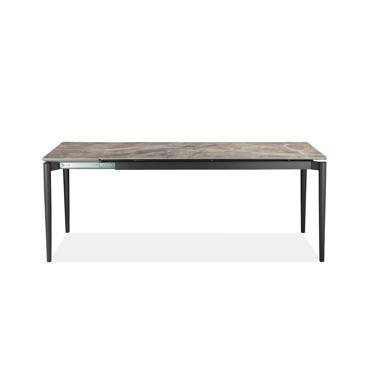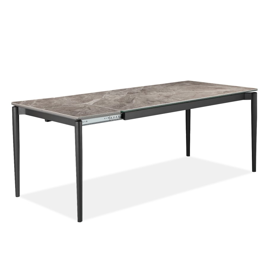 - Finish: Ceramic top with glass backing, with marble effect design and dark grey, powder-coated metal legs