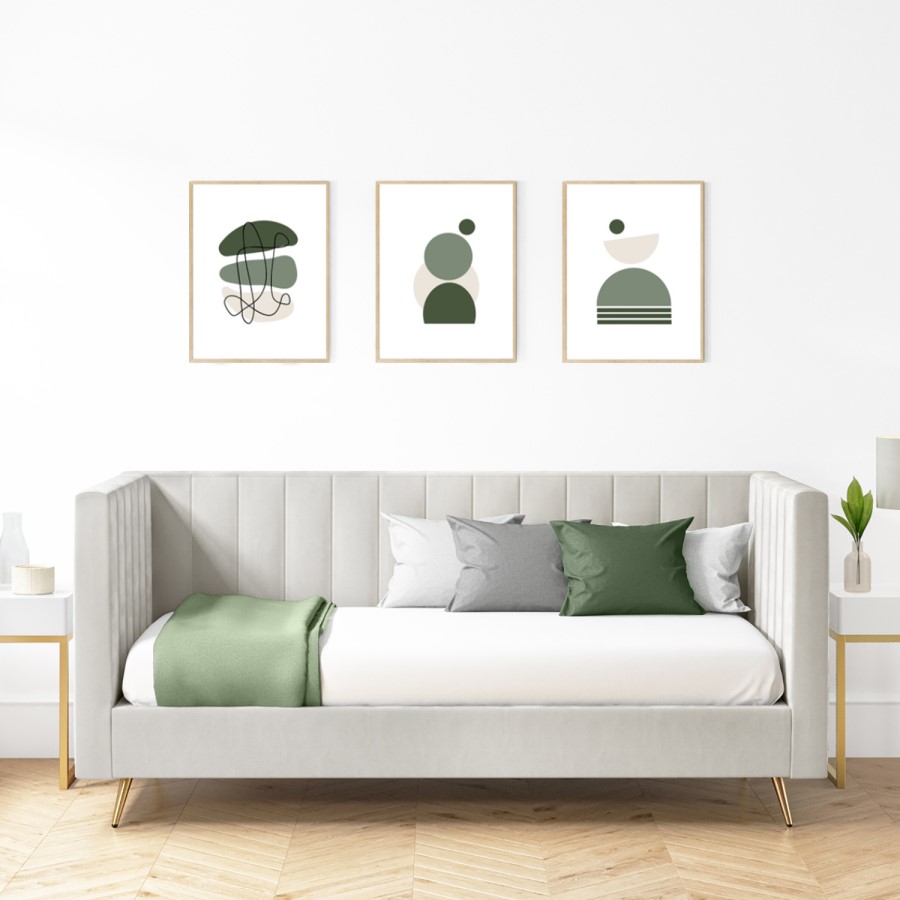 - Single day bed upholstered in a soft light-grey velvet