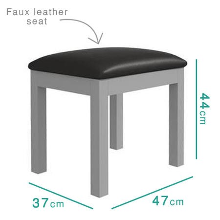 The Loire dressing table stool is highly versatile, it’s been designed to complement the Loire dressing table, fitting snuggly below, but there’s no reason why you couldn’t combine it with something else. With a soft grey frame and a neutral black faux leather seat, it will easily work beautifully in both traditional and modern homes.